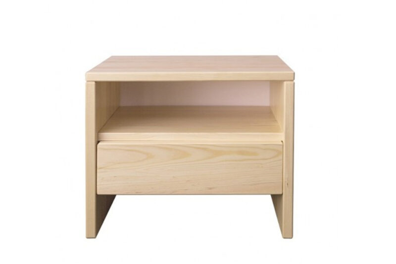 Výnimočný nočný stolík SN 121 zaujme nielen svojim moderným dizajnovým prevedením ale aj použitými materiálmi. Poskytne praktickú odkladaciu plochu na položenie nočnej lampy aj rozčítanej knihy či mobilu. V spodnej časti nájdete otvorenú poličku a praktický šuplík. Šuplík je neodnímateľný.Nábytok je vyrobený z kvalitného masívneho dreva vo farebnom prevedení prírodná borovica. Ponúka bezúchytový systém otvárania šuplíkov. Rozmery (š/v/h): 50 x 45 x 35 cm. Dodávame zmontované!V našej ponuke nájdete aj ďalšie nočné stolíky z masívu ako aj postele, ktoré sa hodia nielen k tomuto nočnému stolíku.