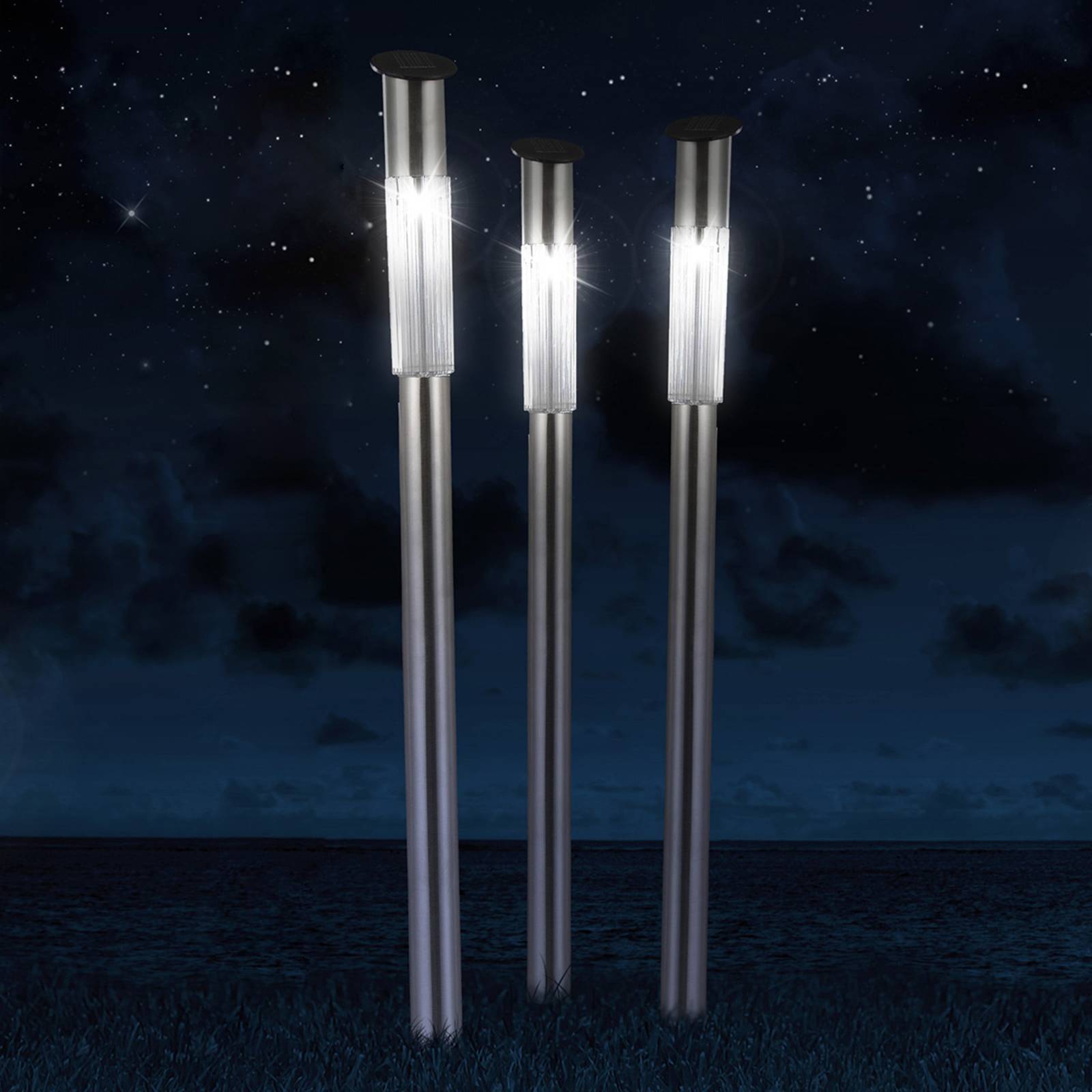 Solarna lampa Fania z nerezovej ocele, s kolíkom do zeme, sada 3 ks