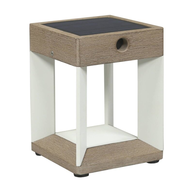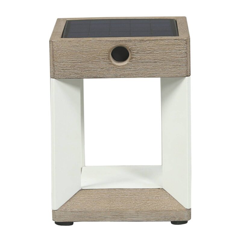 Solárna stolná LED Teckalu, biela/ svetlé drevo