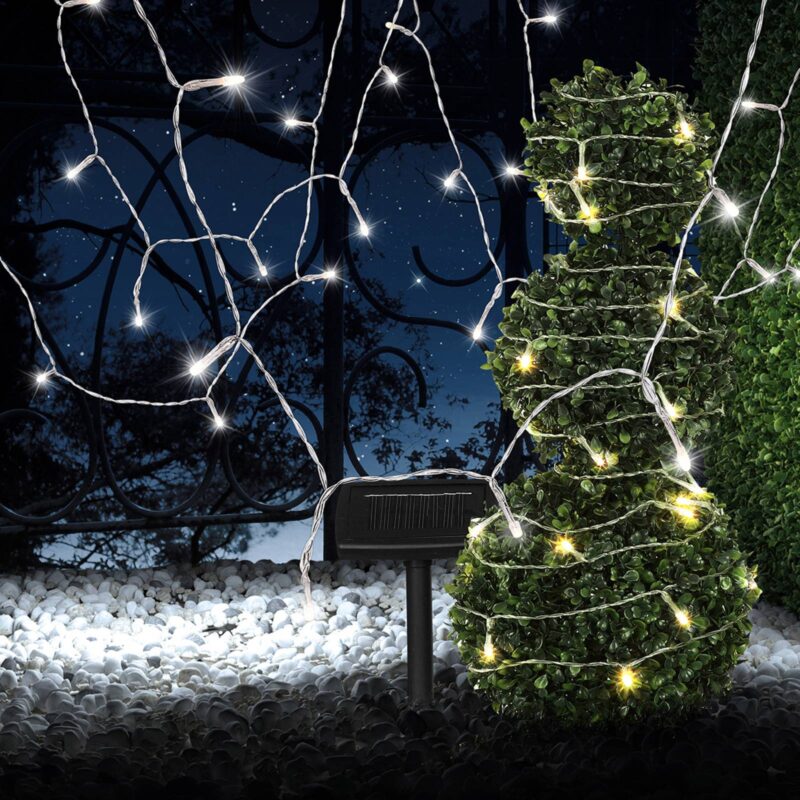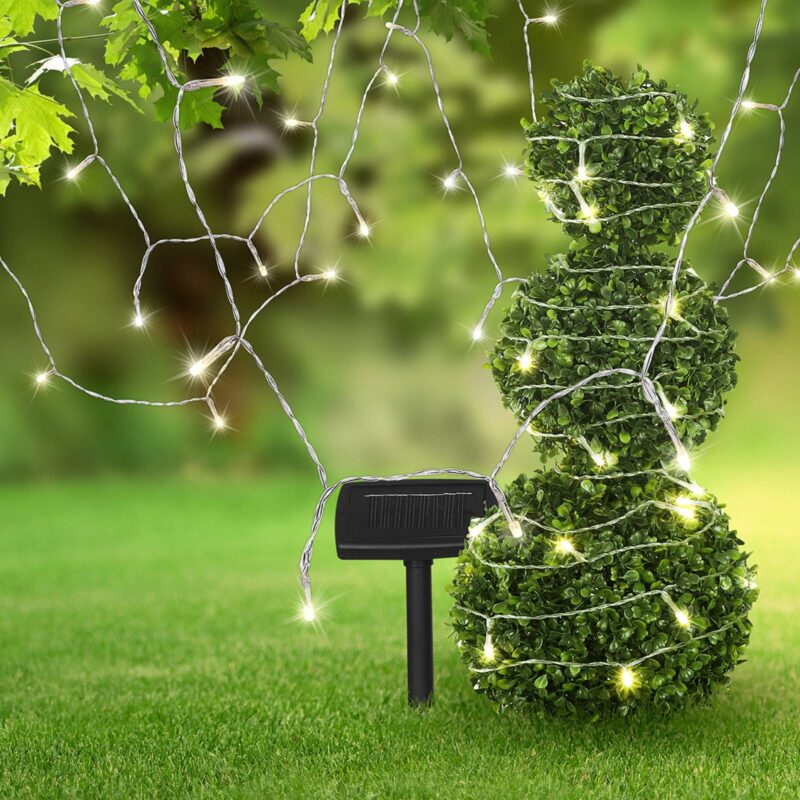 Priehľadná solárna svetelná reťaz Ece do exteriéru Solárna svetelná reťaz Ece je ideálna ako osvetlenie na balkóne, terase alebo na strome. Vďaka svojmu stupňu ochrany IP 44 je vhodná na použitie v exteriéri, pretože je odolná a chránená pred prachom a striekajúcou vodou. Svietidlo boduje aj z hľadiska úspory energie, keďže využíva modernú technológiu. Vďaka solárnemu panelu potrebuje lampa na svoju prevádzku len slnečnú energiu – pri úplnom nabití vydrží svietiť až 8 hodín. Dĺžka od solárneho panelu k prvému svietidlu je 3 metre, takže použitie svetelnej reťaze je flexibilné. Vďaka priehľadnému káblu svetelnú reťaz Ece takmer nevidieť, keď je umiestnená napr. na rastlinách atď.