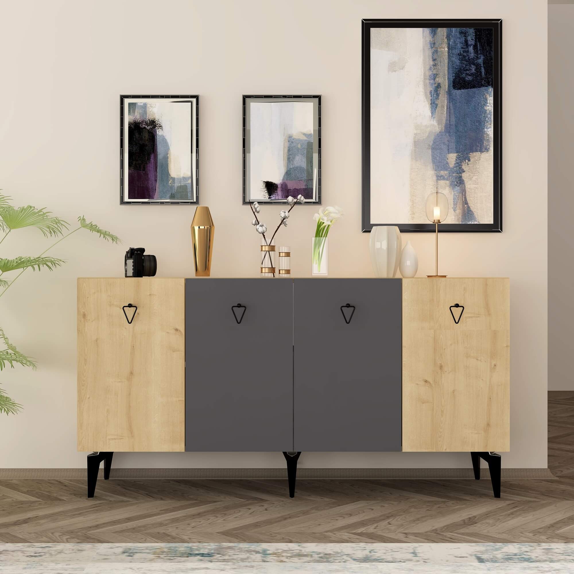 SONO štvordverová komoda, antracit / dub