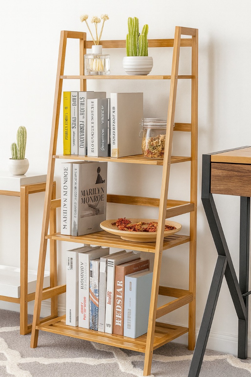 Ak chcete mať svoj domov vždy pekne upravený a ani u Vás nemôžu chýbať police a regály, ktoré sú praktickým doplnkom každého moderného interiéru, ste na správnom mieste. Štýlový bambusový regál SORO Vám umožní prehľadné a šikovné usporiadanie Vašich kníh, dekorácií či spomienkových predmetov a patrí medzi nábytok z bambusu, ktorý symbolizuje návrat k prírode. Materiál: prírodný bambusRozmery:výška: 120 cmšírka: 57 cmhĺbka: 30 cmDodávame v demonte.