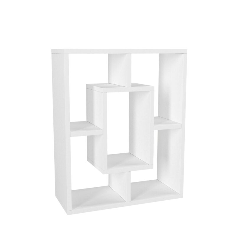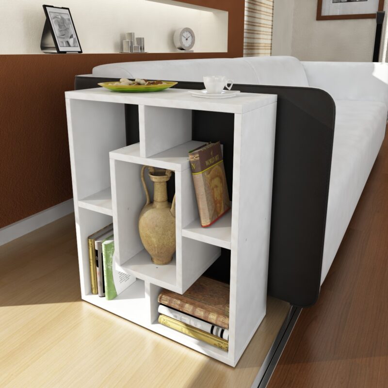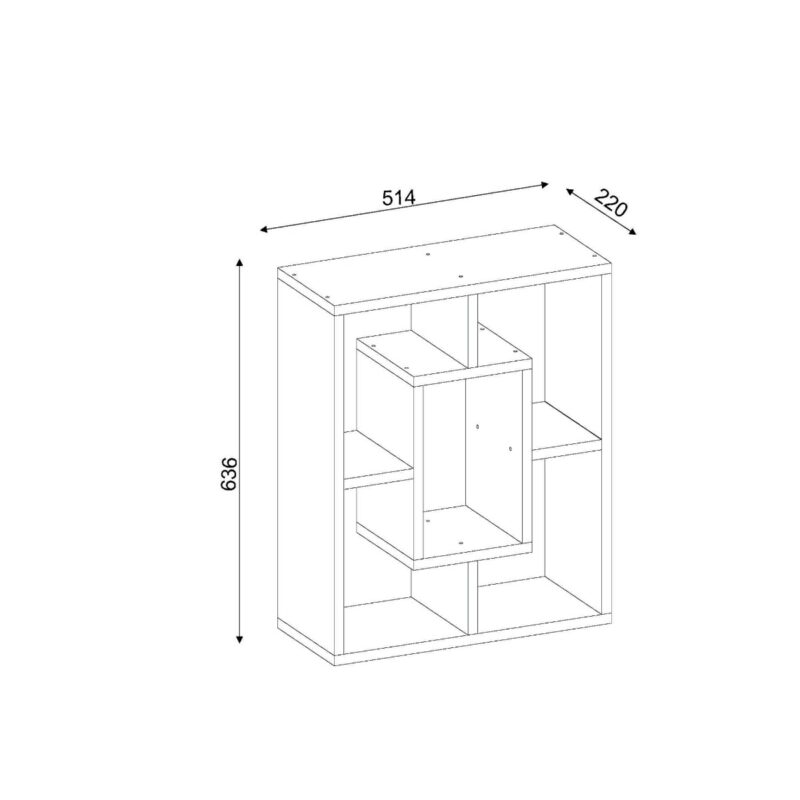 Moderný policový regál SOVI je praktický a štýlový bytový doplnok, ktorý spraví v každom interiéri pekné výstavné miesto pre vaše dekorácie aj miesto na uloženie kníh. Regál je vyrobený v trendovom tvare, ktorý vám umožní ukladať knihy, fotografie a ďalšie predmety jednoducho a prakticky. Použiť ho môžete aj ako štýlový príručný stolík k sedačke. Vyrobený je z kvalitnej laminovanej dosky, preto je pevný a stabilný.regál nemá zadnú sololitovú doskuRozmery:šírka: 51,4 cmvýška: 63,6 cmhĺbka: 22 cmDodávame v demonte.