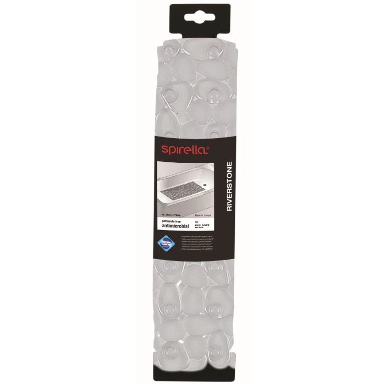 Protiskluzová podložka Spirella RIVERSTONE je skvelým doplnkom do každé koupelny, kde je kladen důraz na bezpečnost, pohodlí a moderní vzhled. Její promyšlený design a kvalitní provedení poskytují stabilní oporu při každé koupeli nebo sprchování, ať už jde o děti, seniory nebo osoby s omezenou pohyblivostí.Podložka je vyrobená z mäkkého, ale odolného PVC, je príjemná na dotyk a zároveň pevná a pružná. Protiskluzový povrch doplnený o prísavky na spodnej strane zabezpečuje, že podložka zostane na mieste aj pri kontakte s vodou. Odtokové otvory efektívne odvádzajú vodu, bránia jej hromadeniu a prispievajú k rýchlejšiemu schnutiu. Vďaka ľahkej údržbe je ideálna pre každodenné použitie.