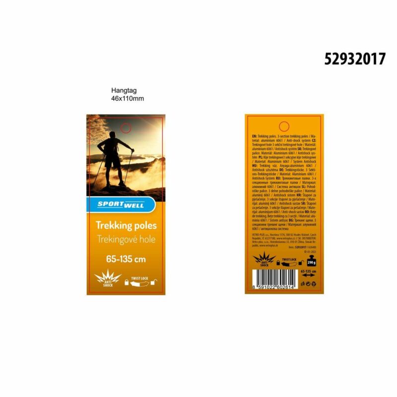 Trekingové palice sú obľúbeným pomocníkom pri horských túrach. Šetria svalstvo, väzy a kĺby. Sú výškovo nastaviteľné, v rozmedzí 65 až 135 cm. Fixačné nastavenie dĺžky umožňuje systém Twist lock. Majú gumovú tvarovanú rukoväť s pútkami pre lepší a príjemnejší úchop, predĺženú komfortný penovým gripom. Antishock systém umožňuje komfortný pohyb v teréne. Oceľová špička zaisťuje optimálne prenesenie síl a stabilitu. Gumová pätka je vhodná pre rovné povrchy, sada klobúčikov na celoročné použitie.