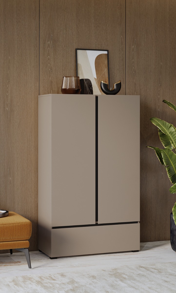 SQUARE vysoká komoda 2D1S, béžová/čierna