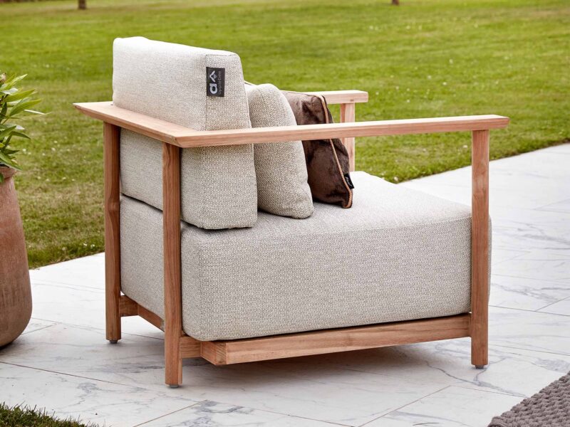 Luxusná s čistými líniami zhotovené kreslo St. Lucia v príjemných neutrálnych farebných tónoch.