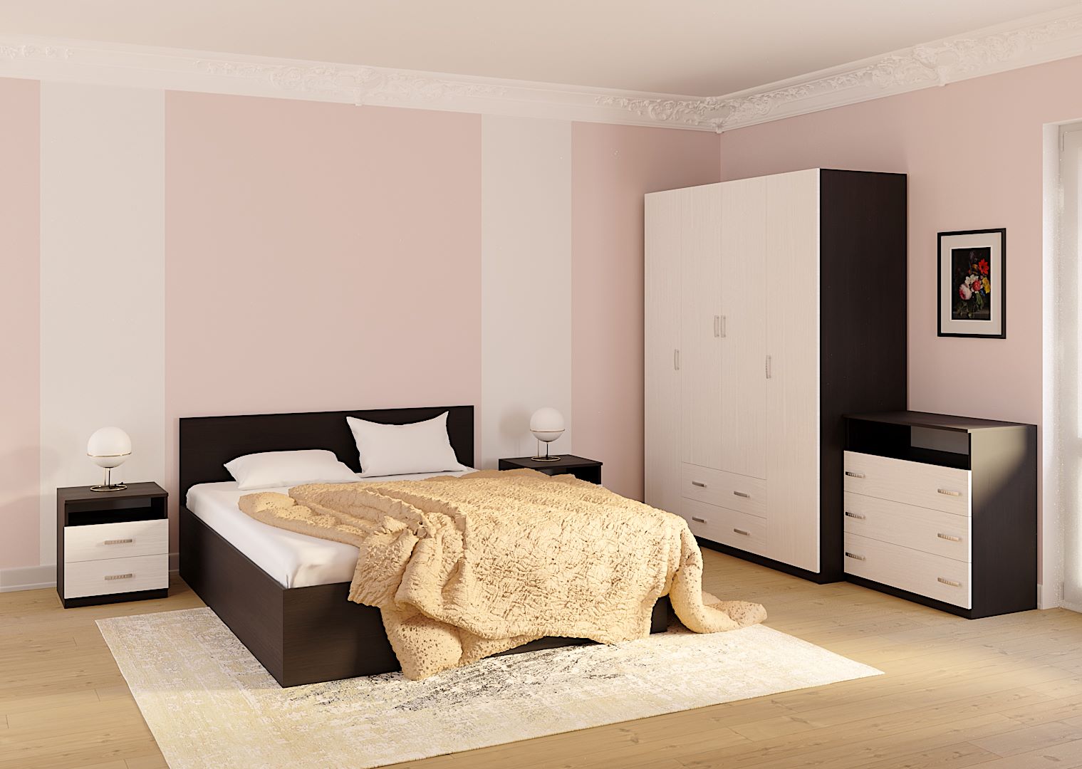 Elegantná spálňová zostava STANA vám umožní zariadiť si spálňu za mimoriadne priaznivú cenu a pritom štýlovo. Je vyrobená z kvalitnej 166 mm hrubej LTD dosky nenáročnej na udržiavanie. Úchyty sú plastové.Farebné prevedenie biele drevo/wenge.Spálňová zostava obsahuje: manželská posteľ 160×200 (ŠxVxH) 170x95x2052x nočný stolík (ŠxVxH): 45×49,5x43komoda (ŠxVxH): 80x84x46šatníková skriňa (ŠxVxH): 160x205x67 cm.Rošt nie je súčasťou postele, odporúča sa dokúpiť rošť s rámom, nie lamelový rošt.Matrac nie je v cene postele, odporúča sa dokúpiť matrac v rozmere 160 x 200 cm. Dodávame v demonte.