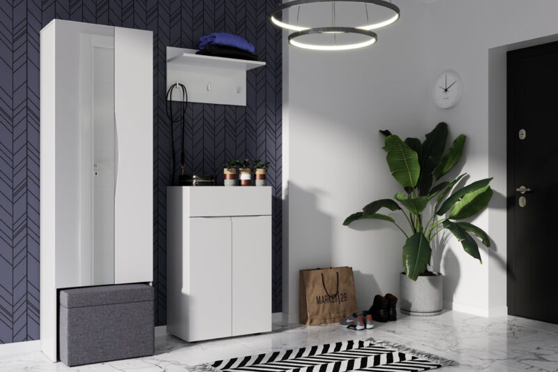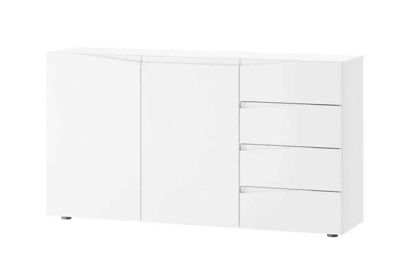 Komoda STAND je jedným z prvkov atraktívneho nábytku STAND. Zaujme vás svojim dizajnom a funčknosťou.Je vyrobená z MDF dosiek. Tie sú pokryté matnou fóliou v modernej bielej farbe.Komoda je dvojdverová. Vo vnútri nachádza polica. Disponuje tiež štyrmi praktickými zásuvkami. Komoda je bez úchytov.Rozmery (š,v,h): 150 x 83 x 38 cm.Nábytok STAND je v modernom a minimalistickom prevedení. Vďaka svojej univerzálnosti ho môžete použiť do rôznych miestností vášho domu. Výborne sa hodí do predsiene, obývačky alebo jedálne. Záleží len na vás a vašej fantázii, kde tento nábytok použijete. Jasné farby nábytku STAND rozsvietia a zútulnia interiér. Vďaka nemu sa budete cítiť u vás doma výborne.Dodávame v demontovanom stave. Záruka 24 mesiacov.