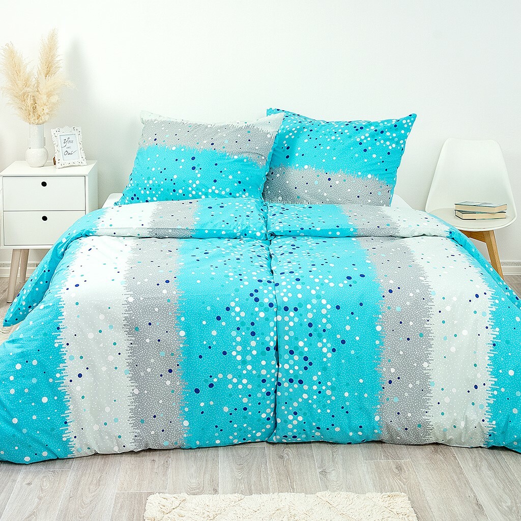 Obliečky v moderných tyrkysových, bielych a sivých odtieňoch a nápaditom dizajne. Tieto štýlové obliečky ocenia všetci, ktorí majú radi netradičné a nadčasové vzory. Vyniknú v každom interiéri. Obliečky na vankúše sú ušité z metráže, vďaka rozmanitosti vzoru je každá iná.Posteľná bielizeň je ušitá z kvalitnej bavlny, ktorá je priedušná, príjemná na dotyk a zaručuje pohodlný spánok po celý rok. Proste posteľná bielizeň, ktorú si zamilujete na prvý pohľad aj na dotyk.Sada obsahuje: