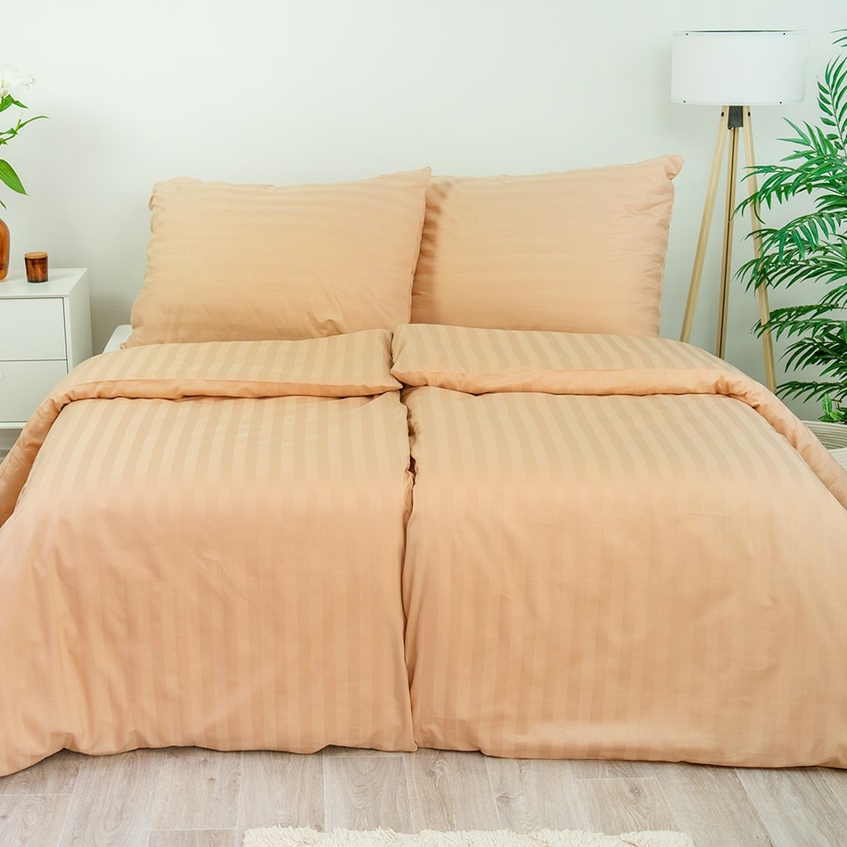 Obliečky z atlas grádlu predstavujú mimoriadne pohodlie a hebkosť. Tento materiál je nestarnúcou klasikou medzi posteľnými obliečkami. Je vyrobený zo 100% bavlny tej najvyššej kvality. Štruktúra 2,5 cm prúžkov podčiarkne eleganciu a dizajn. Béžový odtieň na týchto luxusných obliečkach vnesie do vašej spálne noblesu. Obliečky perte naruby, bez bielidiel a chemických čistidiel. Súprava obsahuje: