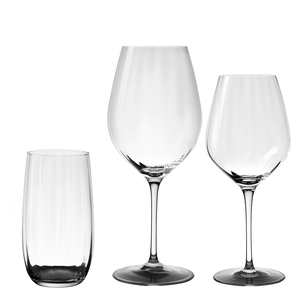 Dodajte chvíľam pri dobrom jedle a víne cveng. Staňte sa jedinečným hostiteľom, ktorý vie, z akého pohára sa najlepšie vychutnáva červené a z akého biele víno. Štartovací set pohárov Optima Line Glas zvlášť oceníte pri rodinných oslavách či stretnutiach s priateľmi. Precízne navrhnutý tulipánový tvar kalicha, ktorý je vyzdobený vnútornými pozdĺžnymi drážkami, navodí atmosféru výnimočnosti. Ak ich položíte na stôl, nebudú len strohým pohárom, do ktorého nalejete víno, ale aj krásnou ozdobou vašich rozhovorov. Vyrobené sú z krištáľového skla META Glass®, ktoré je registrovanou ochrannou známkou spoločnosti Sola Switzerland EU. Vysoká kvalita materiálu a okraj pohárov opracovaný laserom im prepožičali krásnu farbu a nádherný zvuk. Poháre sú vhodné do priemyselnej umývačky riadu a sklo si svoju čistotu zachová aj po 1500 cykloch. Set obsahuje: 6x Pohár na červené víno 660 ml 6x Pohár na biele víno 430 ml 6x Longdrink 490 ml