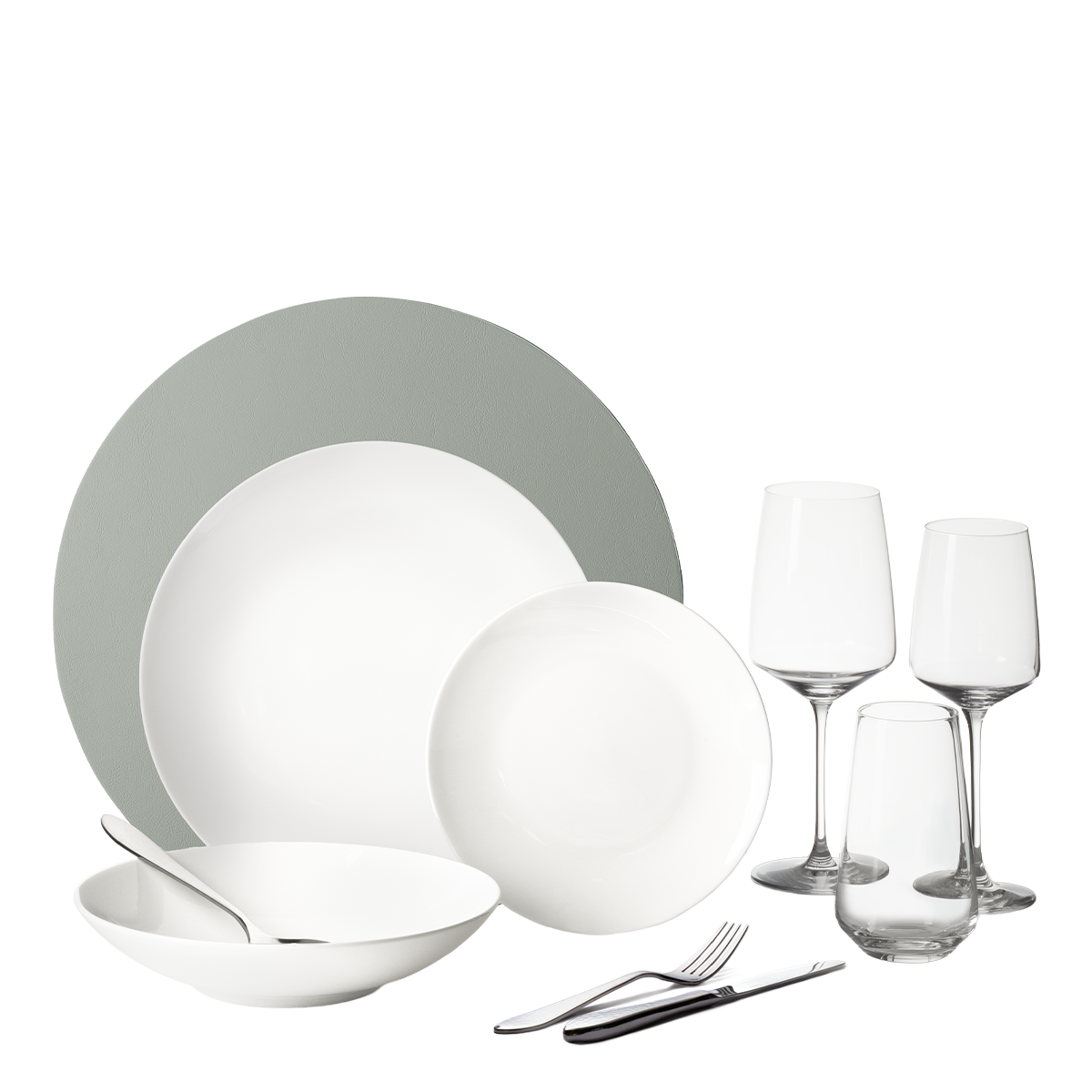 Doprajte si stolovanie, ktoré spája eleganciu a pohodlie v dokonalej harmónii. Snehovo biely porcelán sa skvele hodí na každý deň aj výnimočné chvíle. Príbory s jemným kladivkovým povrchom dodávajú prestieraniu moderný šmrnc a strieborné prestieranie celý dojem podčiarkne chladnou eleganciou a decentným leskom. K tomu krištáľové poháre, ktoré rozžiaria stôl svojou ľahkosťou. Spolu vytvárajú perfektný základ pre novú domácnosť, svadobný dar alebo ako štýlový darček pre niekoho, kto si potrpí na detail. Tento set premení bežné stolovanie na zážitok plný elegancie a radosti. Štartovací set riadu obsahuje: Set Premium Platinum Line 4× plytký tanier Coupe (ø 28 cm) 4× hlboký tanier Coupe (ø 24 cm) 4× dezertný tanier Coupe (ø 20.5 cm) Príbor Queen 6× jedálenská lyžica 6× jedálenský nôž 6× jedálenská vidlička 6× kávová lyžička Prestieranie Elements Ambiente 6× prestieranie Set pohárov 21st CENTURY Glas Lunasol 6× pohár na stopke na červené víno 650 ml 6× pohár na stopke na biele víno 400 ml 6× pohár na long drinky 500 ml
