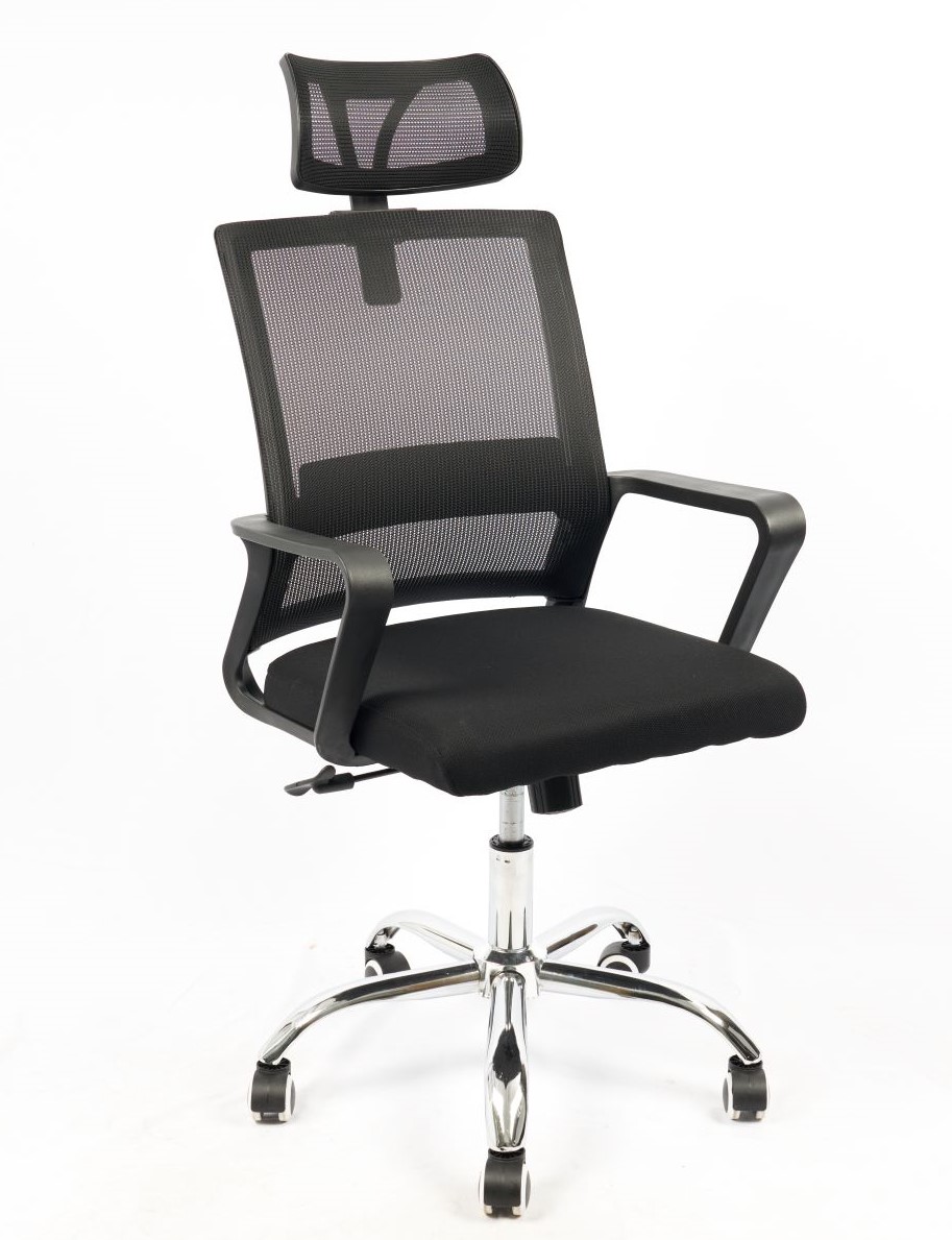 Kancelárske kreslo STEFANY s membránovou sieťkou, ktorá umožňuje vetranie chrbta pri sedení, ocení každý majiteľ. Opierka i sedák sú v čiernom farebnom prevedení. Nosný kríž je chrómový. Plastové kolieska sú šetrné ku podlahe. Kreslo je výškovo nastaviteľné pomocou plynového mechanizmu. Oceníte tiež výškovo nastaviteľnú opierku hlavy.Rozmery kresla: Celková výška kresla: 106-114 cmCelková šírka: 56,5 cmHĺbka: 59,5 cmVýška sedenia: 44 cmNosnosť je 120 kgDodávame v demonte.