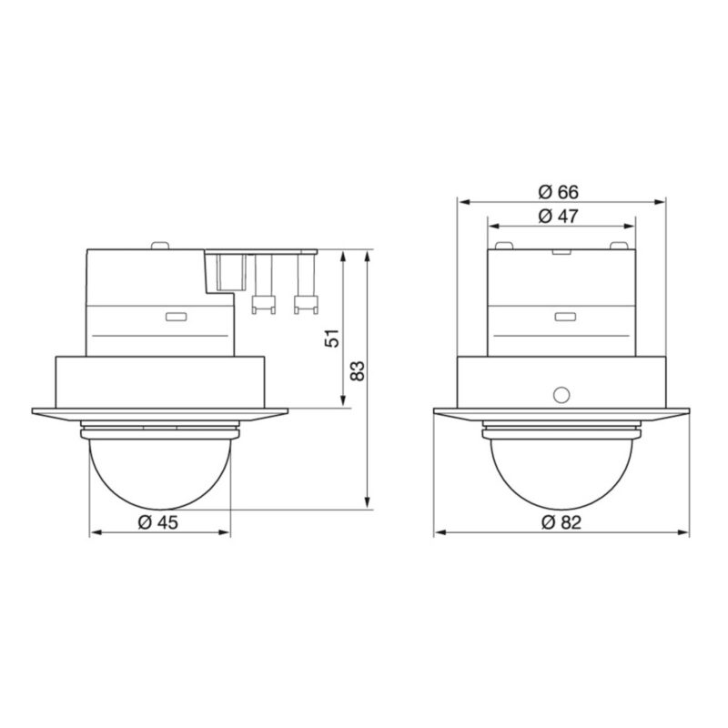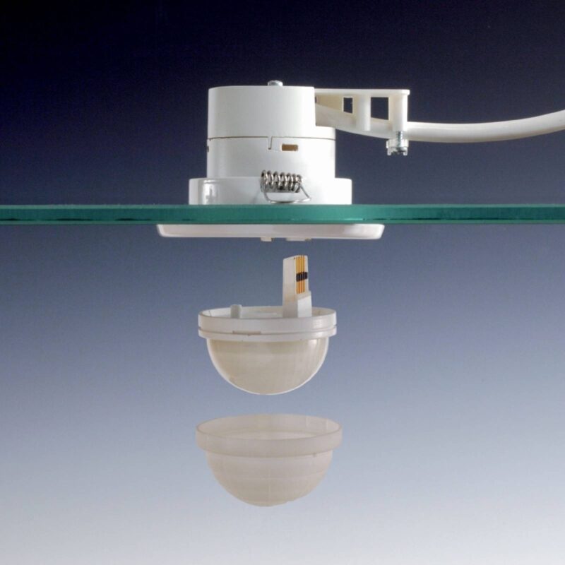 Elegantný infračervený stropný snímač IS D360 Infračervený detektor pohybu IS D360 zaručuje presnú detekciu pohybu v dosahu až 8 metrov. Kompaktný snímač sa zmestí do akéhokoľvek štandardného montážneho rámu, pretože má vonkajšie rozmery svetelného zdroja. Je možné použiť ľubovoľný montážny rám, ktorý sa hodí k farebnej schéme stropu alebo miestnosti. Po inštalácii je viditeľná len presná a rýchla detekcia viacnásobného objektívu. Jednotlivé nastavenia možno pohodlne a rýchlo vykonať pomocou otočného ovládača priamo na hlavici snímača. Na tento účel sa dá hlava ľahko a rýchlo odstrániť alebo nasadiť bez použitia náradia. Technické údaje: – Uhol detekcie: 360° s uhlom otvorenia 180° – Dosah: max. 8 m dookola – Senzorová technológia: 10 úrovní detekcie so 720 spínacími zónami – Nastavenie času: 5 s – 20 min – Nastavenie súmraku 2 – 2000 luxov – Ideálna montážna výška 2,5 – 4 m – Spínací výstup 1, ohmický 1000 W