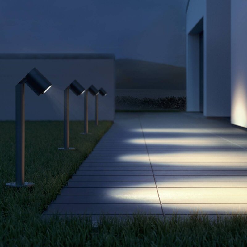 Moderné dizajnové LED svietidlo Spot Way N s detekciou jasu Základné svietidlo Spot Way N LED zaujme sofistikovanou technológiou a veľmi dekoratívnym dizajnom. Základné svietidlo je vyrobené z robustného hliníka a zabezpečuje bezpečné osvetlenie ciest a príjazdových ciest na každom pozemku. Spot Way N je vybavený snímačom jasu, ktorý svietidlo za súmraku automaticky zapne a za úsvitu opäť vypne. Súčasťou balenia je vymeniteľná žiarovka LED s päticou GU10. Prívodný kábel je dlhý 250 cm. – Nastavenie súmraku: 2 – 1 000 luxov – Otočná hlava svietidla: 180° horizontálne, 90° vertikálne