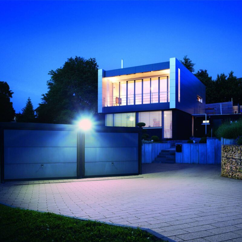 Vonkajší LED reflektor XLED Pro 240 S so senzorom pohybu Jasné osvetlenie teplým bielym svetlom poskytuje vonkajší reflektor XLED Pro 240 S LED, ktorý sa skladá z plastového krytu a opálovo bieleho krytu. Snímač pohybu namontovaný pod reflektorom rozpozná pohyb v širokom uhle 240° a v dosahu až 12 metrov a automaticky zapne svetlo. Vďaka nastaviteľnému súmrakovému senzoru možno zapnutie stráženia vykonať na základe okolitého jasu. Reflektor v hlavnej verzii s detektorom pohybu možno prepojiť s podriadenou verziou bez snímača a synchrónne spínať osvetlenie v celom dome. – Montážna výška: max. 6 m – Dosah: radiálny 3 m, tangenciálny 12 m – s ochranným krytom sneak-by – Uhol detekcie 240°, uhol clony 180 – Nastavenie súmraku od 2 do 1000 luxov – Nastavenie času: 10 sekúnd až 15 minút