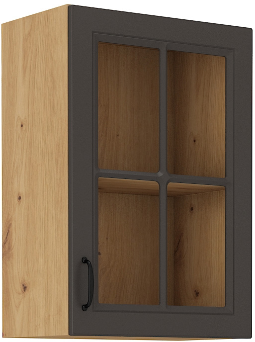 Horná presklená skrinka STELLA 40 GS-72 je moderná a elegantná skrinka kuchynského nábytku STELLA.Kuchyňa STELLA svojim prevedením poteší všetkých zákazníkov, ktorí majú radi jednoduchosť, praktickosť a zároveň prijateľnú cenu.Je v modernom prevedení s čistými líniami a zároveň je priestranná a funkčná. Vďaka veľkému výberu kuchynského nábytku, ktoré STELLA poskytuje si poskladáte svoju kuchyňu podľa vašich predstáv. Skrinka je jednodverová. Korpus je vyrobený z kvalitných LTD dosiek v hrúbke 16mm. Čelo skrinky je z kvalitného  MDF materiálu v hrúbke 16 mm. Farebné prevedenie skrinky je dub Artisan, farba dvierok šedá matná. Interiér skrinky je biely. Predpripravené sú slepé vyvŕtané otvory pre rukoväte, pričom rukoväť je vyrobená z kovu v šírke 192 mm. Zaručene oceníte aj praktické pánty s tichý dovieraním.Rozmery: 400 x 720 x 310 mm (Š x V x H).Dodávame v demontovanom stave. V našej ponuke nájdete aj ďalšie kuchynské skrinky STELLA.