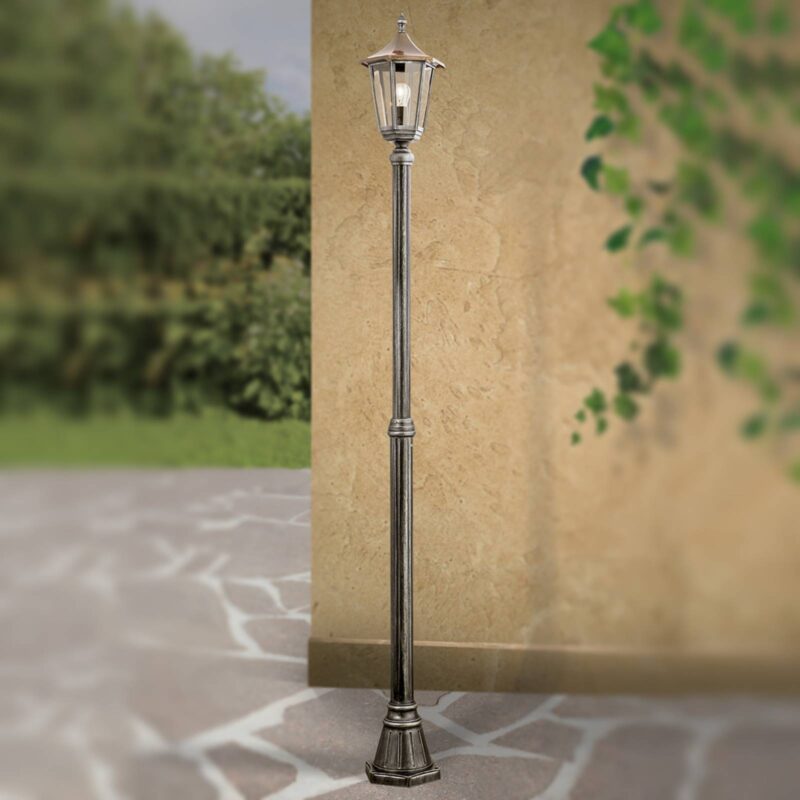 Starožitne pôsobiace stĺpové svietidlo ANTOINE Stĺpové svietidlo ANTOINE sa prezentuje klasickým dizajnom a vyžaruje nostalgický šarm. Vďačí zaň pekne tvarovanej hliníkovej konštrukcii, ktorá je doplnená zaujímavým medeným plechom. Okrem toho má svietidlo kryty z číreho skla, ktoré chránia žiarovku pri všetkých poveternostných podmienkach. Atraktívny tvar lampáša dobre zapadne do najrôznejších exteriérov a vytvorí pritom zámerne starožitný akcent.