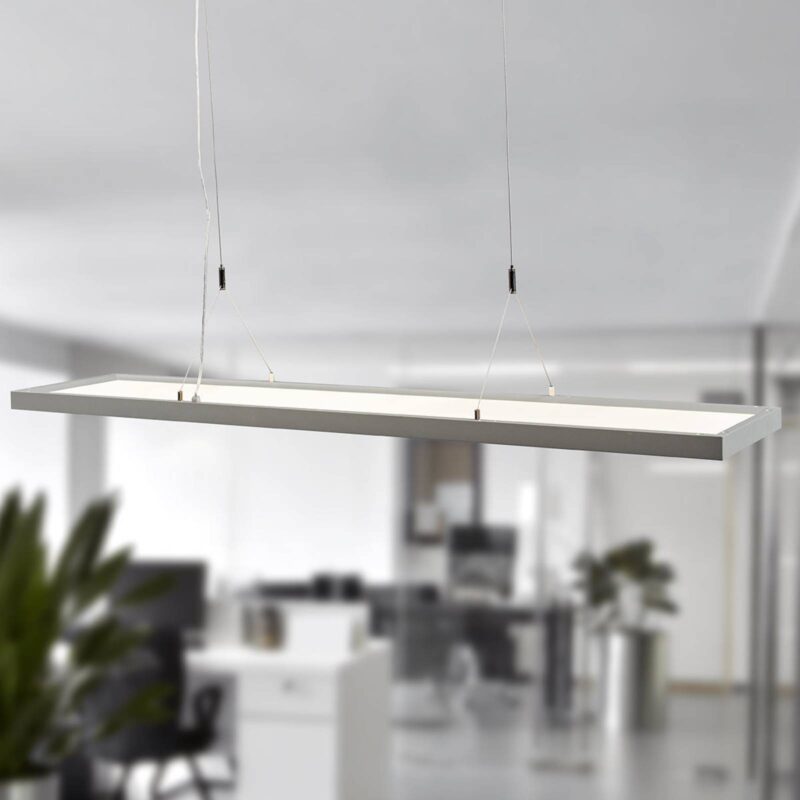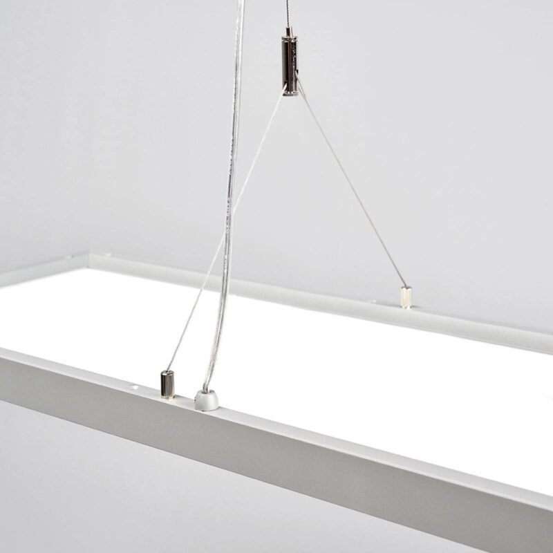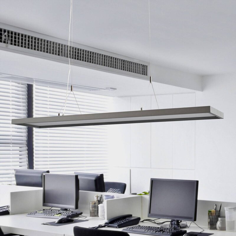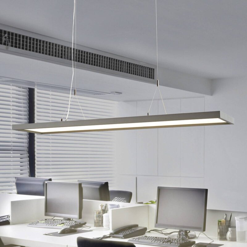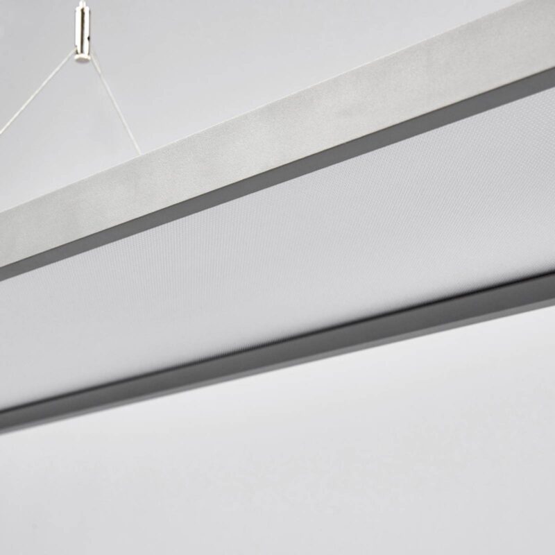 Podlhovasté, jasne osvetlené kancelárske závesné svietidlo Divia LED s priamym svetlom, stmievateľné DALI Divia je závesné svietidlo, ktoré bolo navrhnuté na použitie v kanceláriách a pracovniach. Má podlhovastý tvar s dĺžkou viac ako jeden meter a svetelný lúč smeruje nadol aj nahor. Pomer priameho a nepriameho svetla je 70 % ku 30 % a závesná lampa vytvára prirodzený svetelný obrazec, ktorý osvetľuje pracovné prostredie takým spôsobom, že sa človek predčasne neunaví, ale môže sústredene pracovať dlhý čas. – DALI stmievateľné – UGR<19
