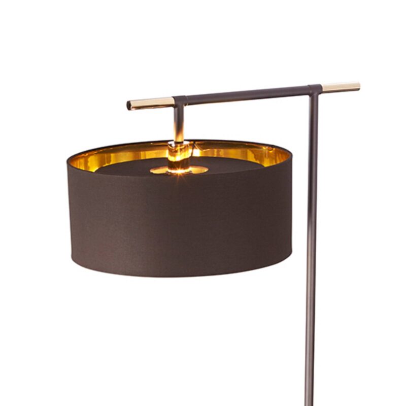 stojaca lampa Balance v tmavohnedo-bronzovej farbe stojaca lampa Balance sa skladá z okrúhleho tmavohnedého pätice žiarovky , elegantného rámu žiarovky s detailmi bronzovej farby a krásneho tienidla látky, ktoré je zvonka tmavohnedé a zvnútra bronzovej farby, čo dodáva žiarovke úžasne elegantný vzhľad a luxusný vzhľad. Vďaka svetlu odrážajúcemu sa v interiéri tienidla vytvára lampa v miestnosti úžasne príjemnú atmosféru, ktorá je skvelá na relaxáciu.