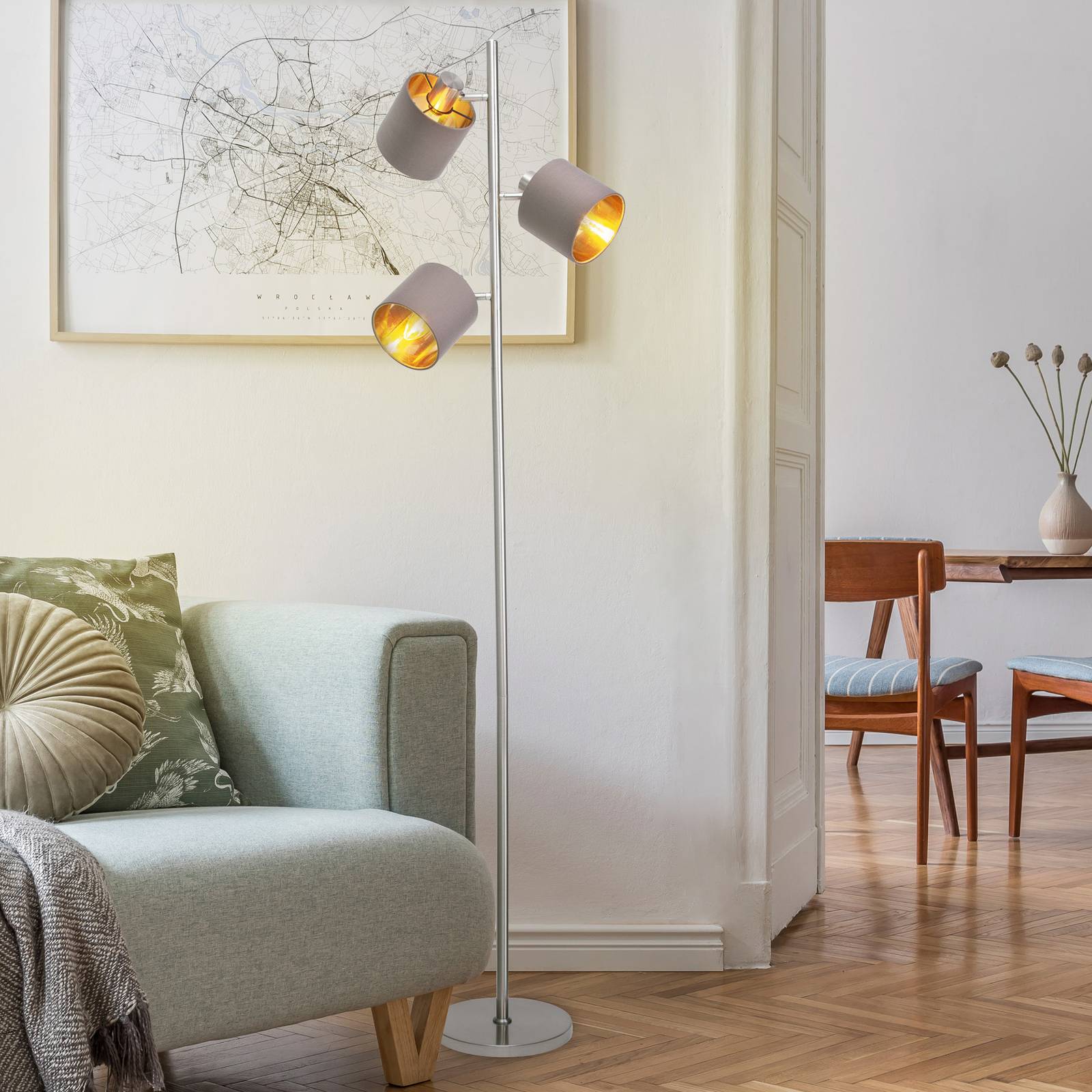 Stojaca lampa Maron, 3-pl., textil, hnedá/zlatá