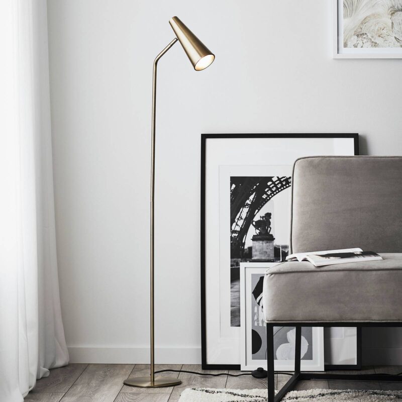 Stojaca lampa Peak, variabilná, starožitná mosadz