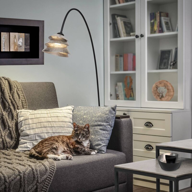 Stojacia lampa SNAIL ONE – sen zo železaS podlahovou lampou SNAIL ONE vyrobenou výlučne zo železa možno vďaka jej úzkym rozmerom vytvoriť útulnú atmosféru aj v malých miestnostiach. Štíhly čierny podstavec lampy so strieborným dekorom tvorí v hornej tretine oblúk k hnedému tienidlu, ktoré je tiež vyrobené zo železa. Tienidlo pozostáva zo špirálovitého železného pásu položeného na sebe. Svetlo prúdi von cez rôzne otvory. Osobitným kvalitatívnym prvkom tejto lampy sú filigránske švy jednotlivých plôšok strieborných listov na povrchu tienidla, ktoré sa vyskytujú len pri pravej práci so striebornými listami. Švy v žiadnom prípade nie sú škrabance, ale naopak, dokazujú vysokú kvalitu strieborných listov tejto stojacej lampy.