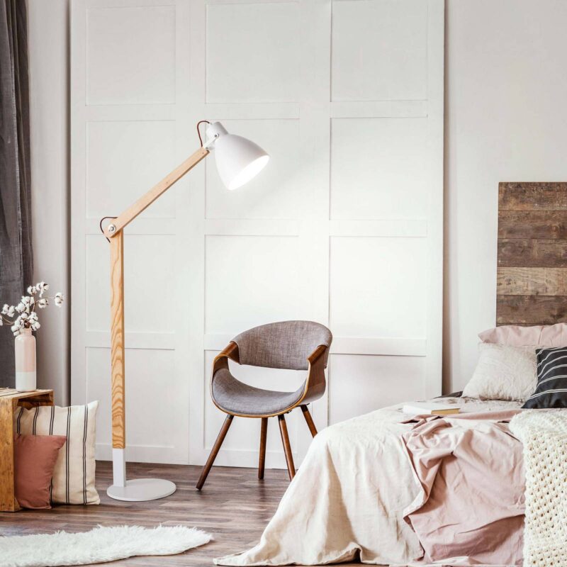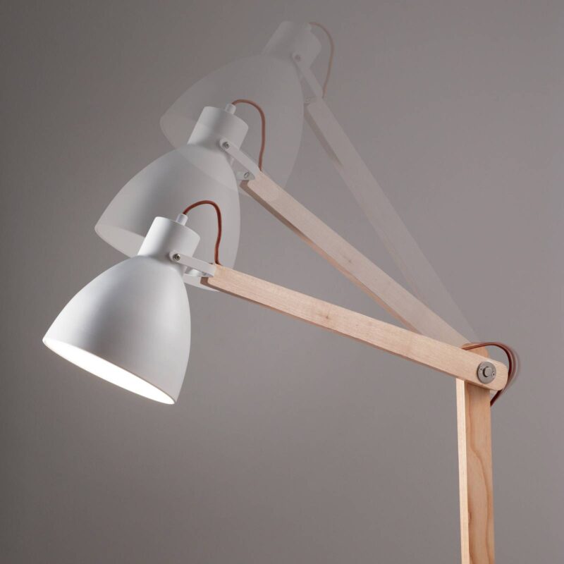 Stojaca lampa Sveva z dreva, biela/jaseň