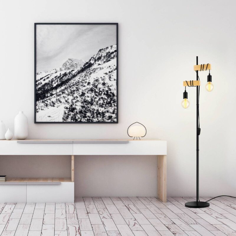 Stojaca lampa Townshend 2-pl., čierna/svetlé drevo