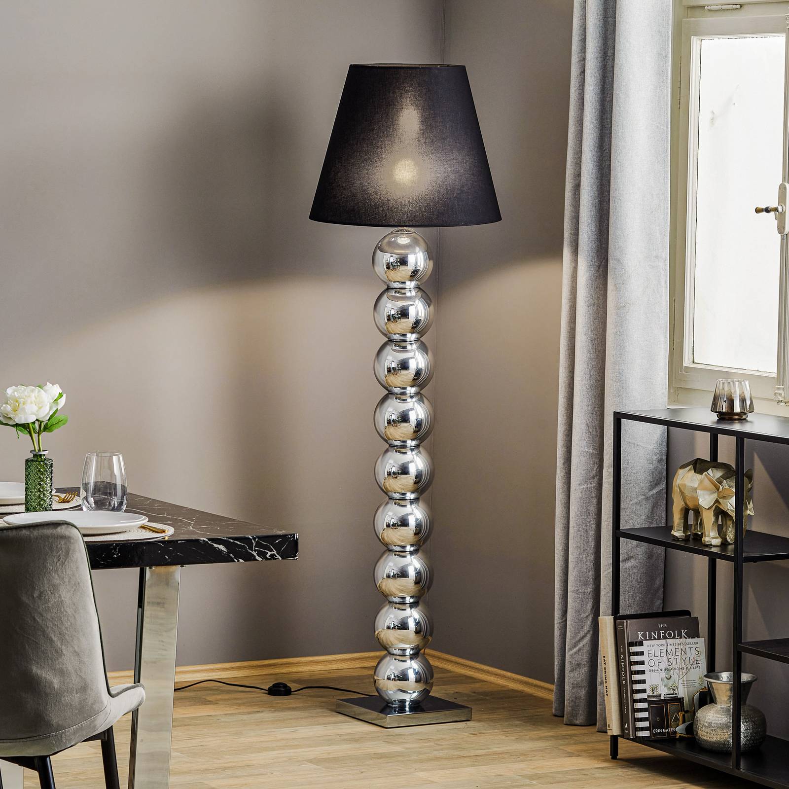 Stojacia lampa Fulda, tienidlo na lampu čierne, podstavec chróm