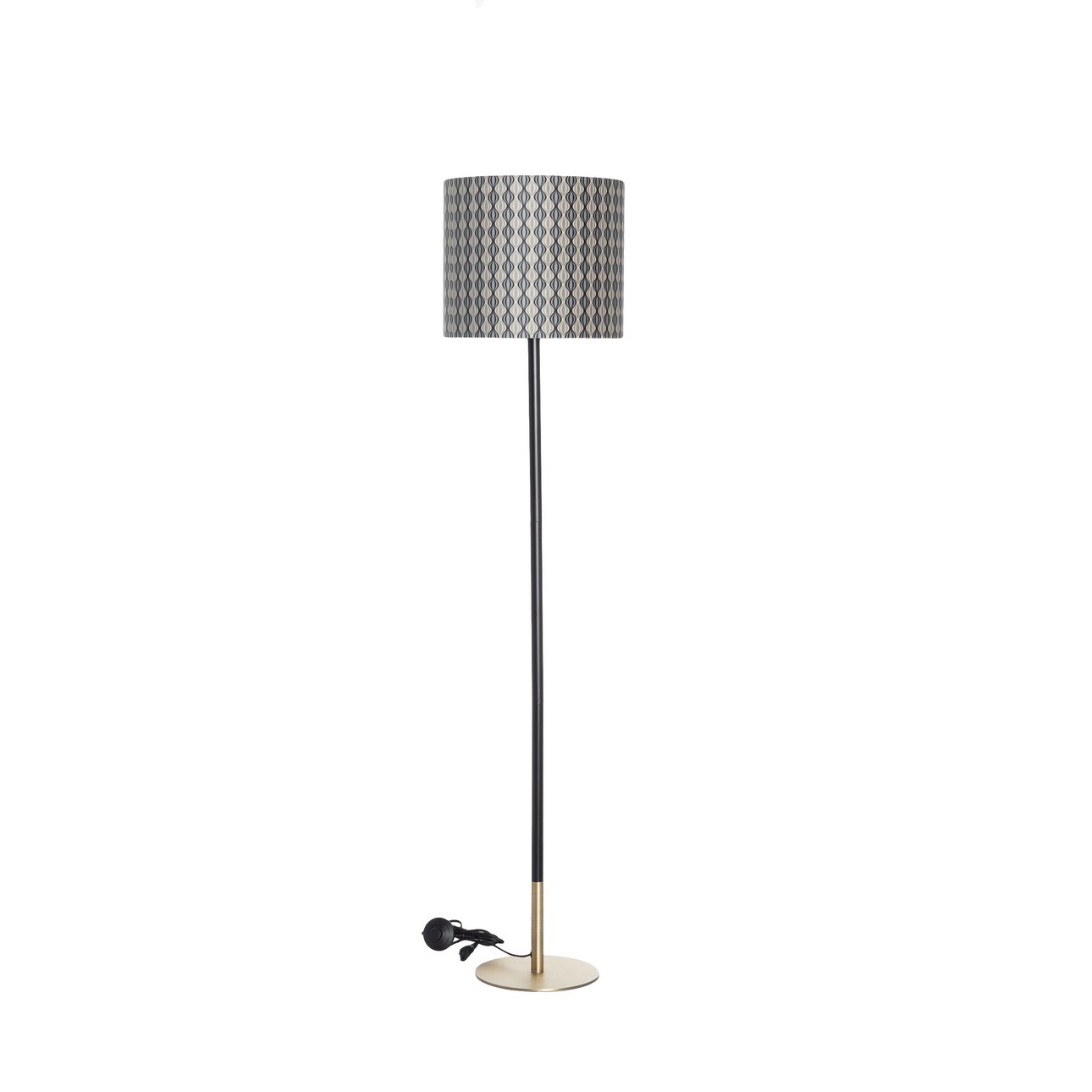 Stojacia lampa s tienidlom s retro vzorom na jednoduchom podstavci s kovovým povrchom.Výrazný vzorovaný odtieň dodáva miestnosti originalitu. Tkanina jemne rozptyľuje svetlo a vytvára útulnú atmosféru na relaxáciu. Vysoký stojan je vyrobený z kovu v čiernej farbe a má nohy v antickom bronze. Dokonale doplní zariadenie obývacej izby, pracovne alebo spálne v retro alebo modernom štýle.Model je určený pre žiarovku E27, max. 40 W (nie je súčasťou dodávky).Rozmery: tienidlo: priemer 35 cm, výška 30 cm; podstavec: priemer 25 cm, výška 135 cm; celková výška 162 cm.