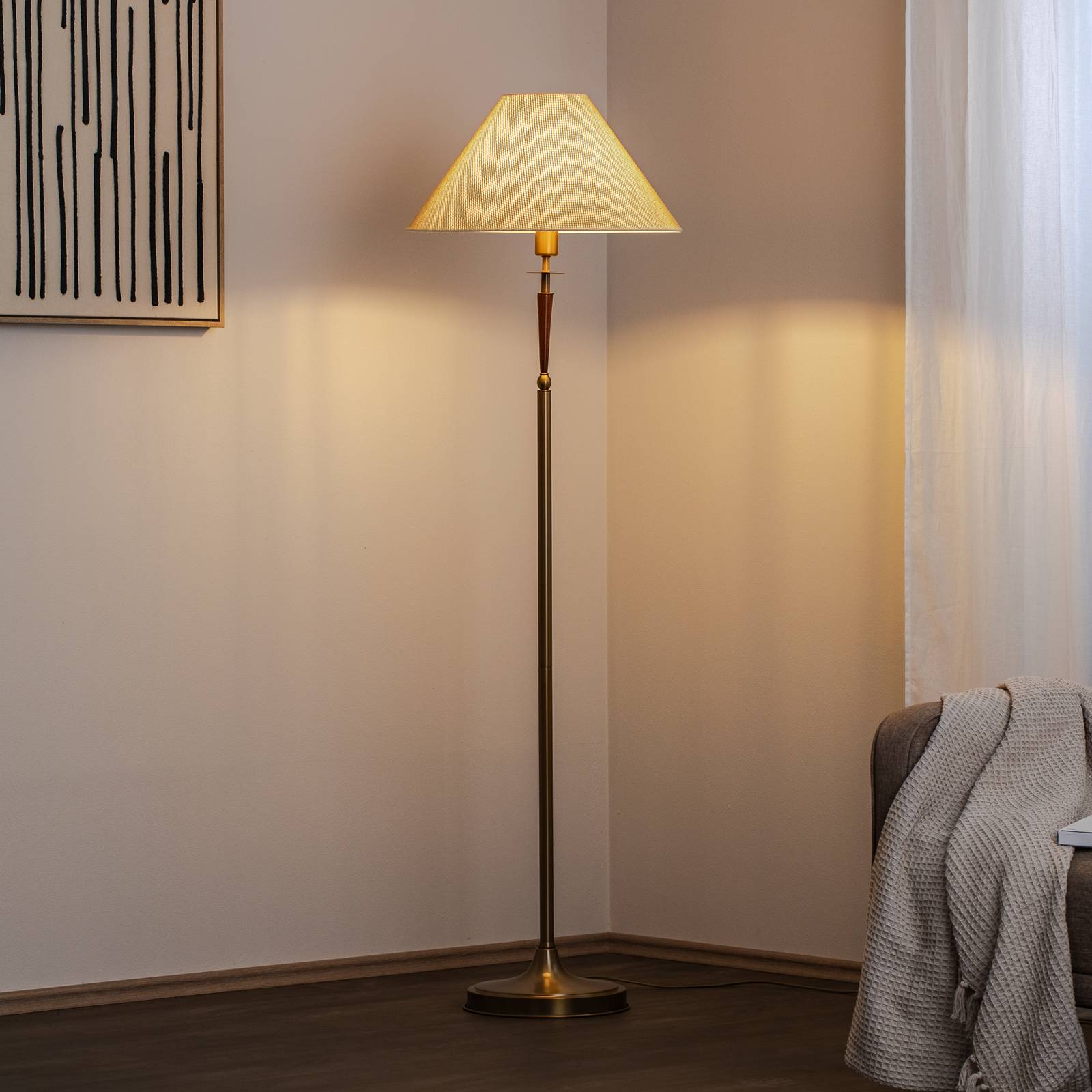Stojacia lampa HLM-9009-1E: elegancia a univerzálnosť v obývacej izbe a spálni Stojacia lampa HLM-9009-1E s textilným tienidlom spája ušľachtilé materiály ako kov, textil a drevo do harmonického celku. Kombinácia antik zlatého rámu a béžového textilného tienidla dodáva každej miestnosti teplú a príjemnú atmosféru. Táto lampa je ideálna do obývacej izby alebo spálne a vytvára štýlové akcenty, ktoré pôsobia klasicky aj nadčasovo. Vďaka premyslenému výberu materiálov a elegantnému dizajnu stojaca lampa HLM-9009-1E nie je len estetickým obohatením, ale aj funkčným zdrojom svetla. Vysoká kvalita spracovania zaručuje dlhú životnosť a stabilitu, zatiaľ čo textilný tienidlo zaisťuje príjemné rozloženie svetla. Táto lampa je perfektnou voľbou pre všetkých, ktorí kladú dôraz na kvalitu a štýl.