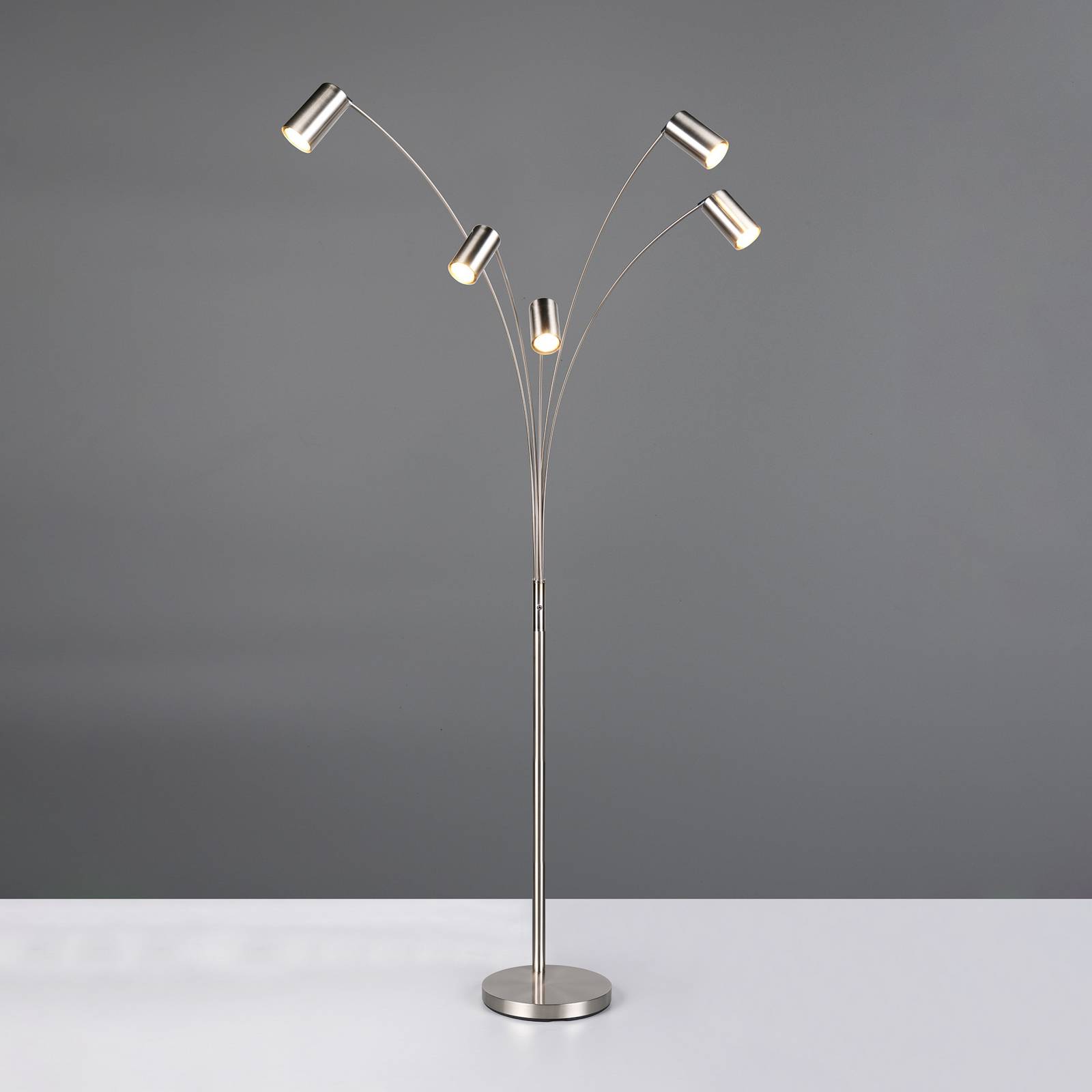 Stojacia lampa Marley, nikel, výška 200 cm, 5 svetiel, kov