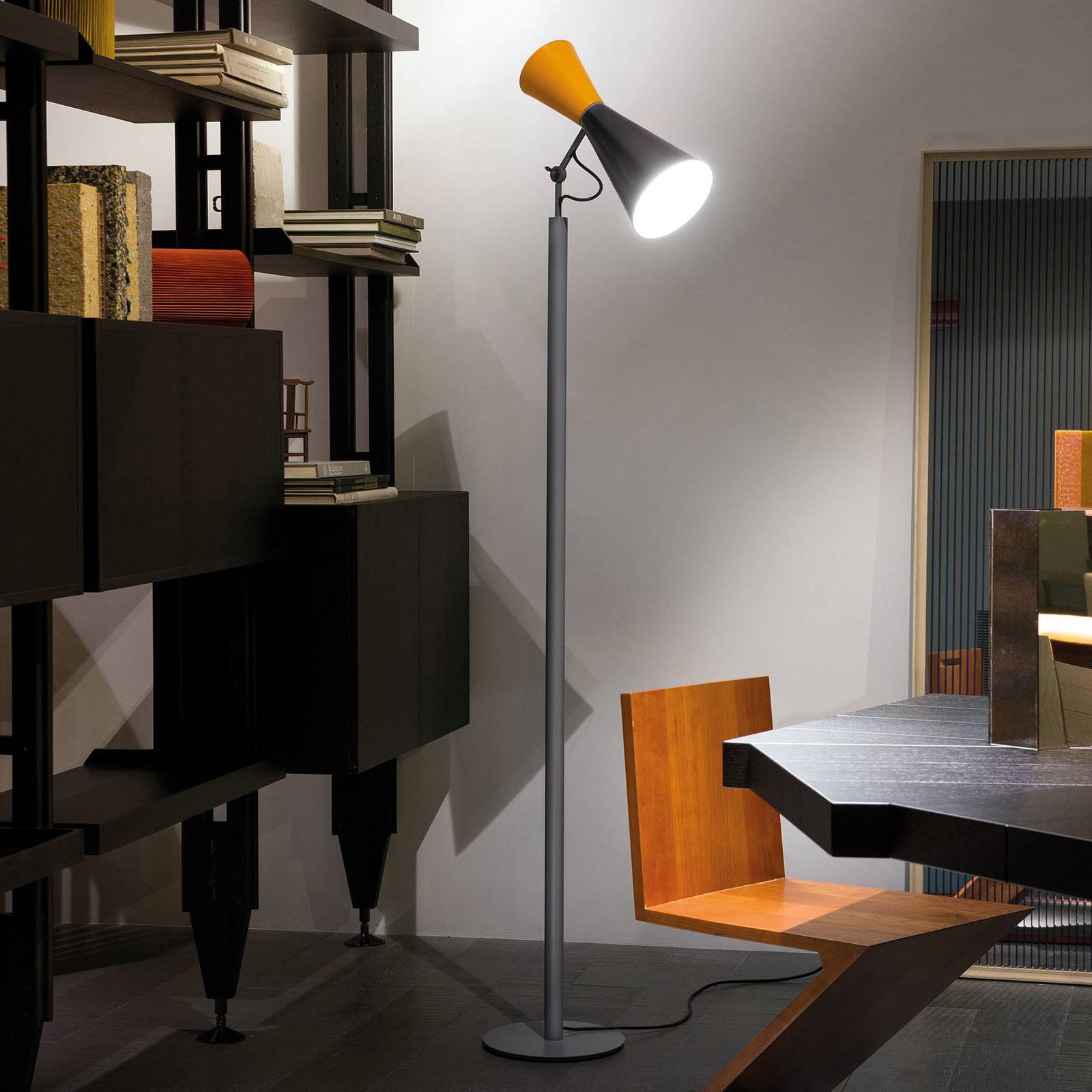Stojacia lampa Nemo Parliament, čierna/žltá