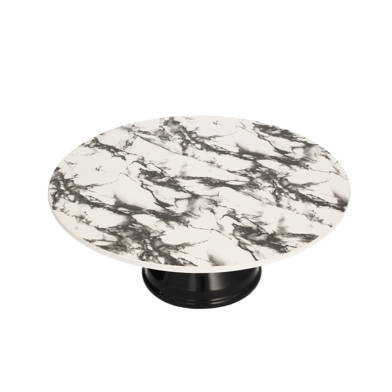 Elegantný podnos s jedinečným mramorovaným vzorom. Dokonale na ňom vystavíte svoje torty a občerstvenie. Vďaka čiernej nohe v tvare kužeľa získate na stole ďalší priestor. Vhodný na každodenné použitie aj na rodinné oslavy.
