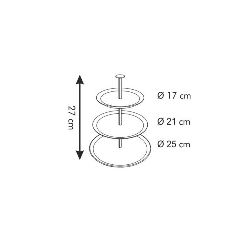 Rozmery: výška 27 cm, priemer tanierov: 17, 21 a 25 cm