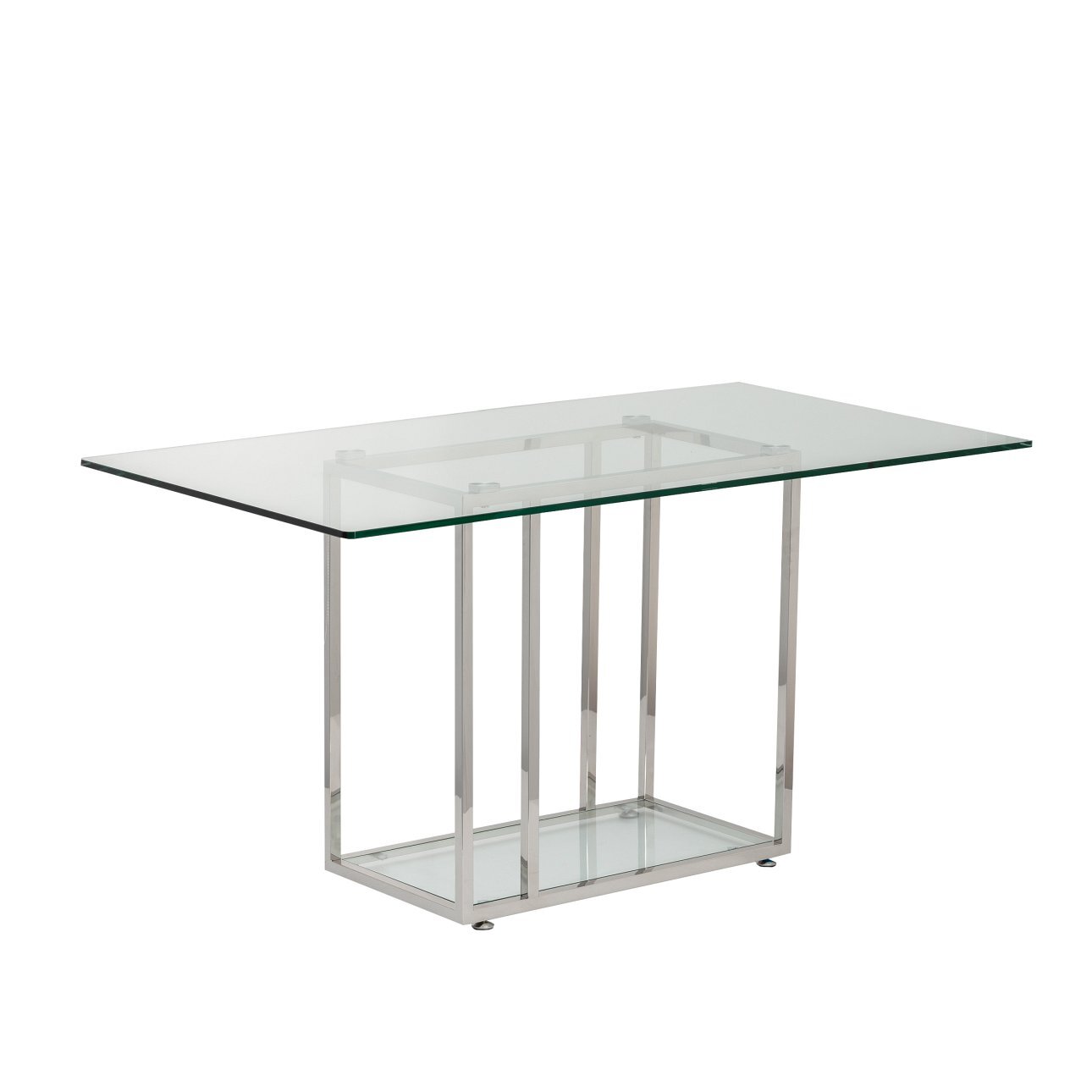 Modernistický štýlový stôl vyrobený z chrómovanej ocele a číreho skla. Púta pozornosť svojím neobyčajným tvarom a symetriou línií. Pôsobivá surová doska je osadená na pôvodnom podstavci pripomínajúcom tvar konzoly. Eleganciu stola podčiarkujú vysoko kvalitné materiály a starostlivá povrchová úprava. Skvele sa bude vynímať v moderných interiéroch, pričom zvýrazní osobný charakter svojho majiteľa.