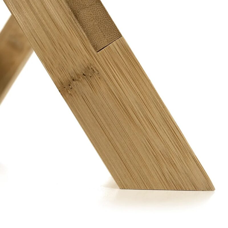 Stolička očarí svojim jednoduchým a praktickým dizajnom. Je vyrobená v prírodnom prevedení z lakovaného bambusu. Možno ju jednoducho zložiť, podľa potreby. Nie je vhodná do exteriéru.Dodávané v monte.