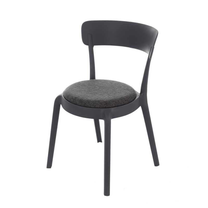 Moderná stolička v sivej farbe. Stolička s okrúhlym sedákom potiahnutým látkou a pohodlným operadlom je návrhom pre všetkých, ktorí oceňujú praktické, ale zároveň efektívne riešenia. Vďaka jednoduchému tvaru, univerzálnemu sivému farebnému prevedeniu a odolnému polypropylénu sa tento praktický kus nábytku dokonale hodí do moderných interiérov.