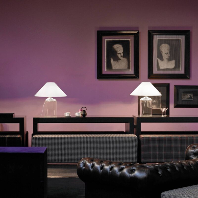 Stolová lampa Alega s podstavcom z priehľadného sklaKombinácia klasicky tvarovaného bieleho textilného tienidla a podstavca vyrobeného výlučne z viacvrstvového skla fúkaného ústami robí zo stolovej lampy Alega zdroj dodatočného svetla s ľahkým retro nádychom. Vyžarujúce svetlo vyžaruje cez otvor v tienidle smerom nahor aj nadol, kde potom vytvára kulisu priehľadnosti sklenenej základne a zároveň dostáva mimoriadne atmosférický, teplý nádych.- Dizajn: Vico MagistrettiTvorca tejto krásnej stolovej lampy sa narodil v Miláne v roku 1920 a po štúdiách rýchlo napredoval a stal sa známym dizajnérom pre oblasti priemyslu, nábytku, interiérového dizajnu a osvetlenia. Mnohé z jeho prác boli ocenené, napríklad lampa Apollo a kreslo Moralunga cenou Compasso d’Oro v roku 1979. Magistretti zomrel v roku 2006 v Miláne.- s fúkaným, viacvrstvovým sklom