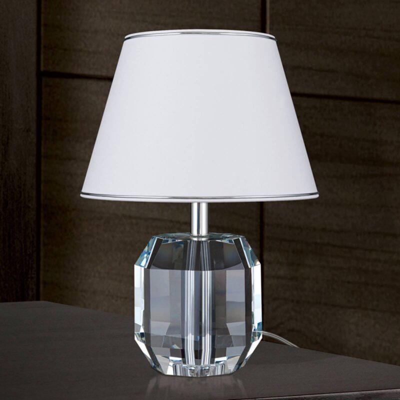 Stolná lampa Alexis s krištáľmi chróm/biela