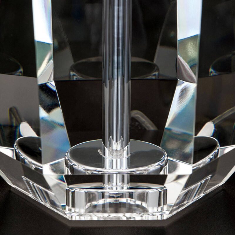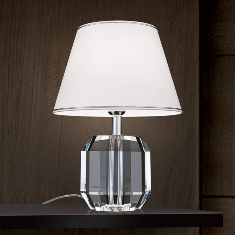 Elegantne navrhnutá stolová lampa Alexis s dekoratívnou kombináciou farieb a materiálov Stolová lampa Alexis vyžaruje diskrétnu eleganciu a upúta pozornosť v každej miestnosti, aj keď nie je osvetlená: Jeho klasicky tvarované tienidlo z bieleho chintzu je umiestnené na pochrómovanom oceľovom ráme, ktorého lesk umocňuje svetlo, ktoré vyžaruje. Zvláštnosťou je však baňatý podstavec z priehľadného kryštálu K9, ktorý obklopuje rám. Keď sa zapne osvetlenie, aj to je účinne inscenované. V záujme ušľachtilého vzhľadu boli zástrčka, vypínač a kábel tiež priehľadné. Alexis poskytuje veľmi útulné akcentové osvetlenie so špeciálnym nádychom.