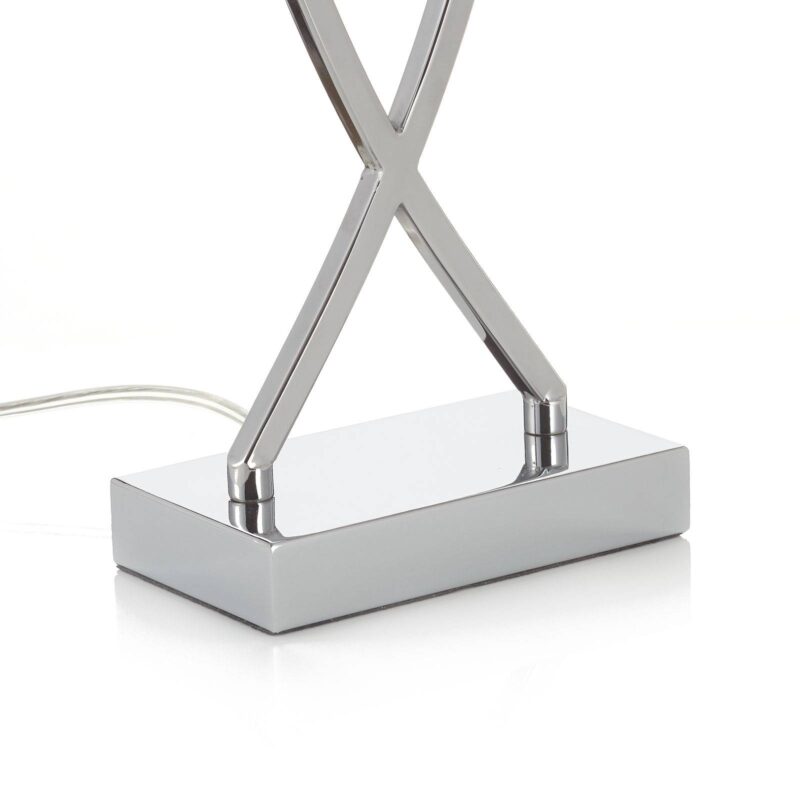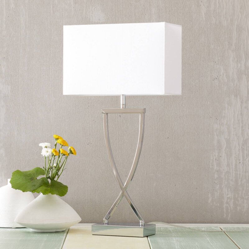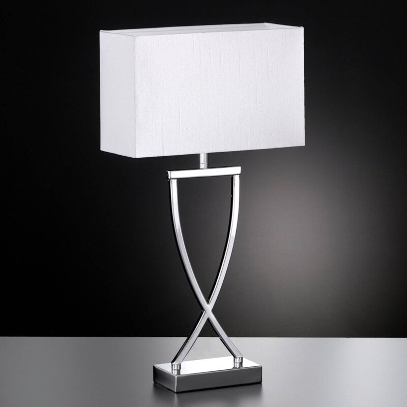 Stolové svietidlo Anni prináša do obývačky punc výnimočnosti Toto očarujúce stolové svietidlo s kombináciou chrómu a bielej farby zaujme atraktívnym dizajnom a detailne vypracovaným kovovým rámom. V kombinácii s obdĺžnikovým textilným tienidlom bude svietidlo Anni dozaista pútať pohľady, pričom nezáleží na tom, či bude vyložené na jedálenskom stole, na komode alebo slúžiť na chodbe ako dodatočné osvetlenie.