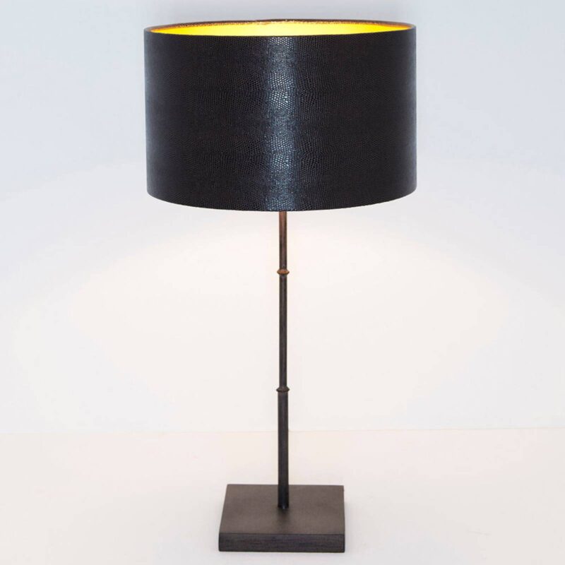 Stolová lampa bambus – dekoratívne navrhnutý doplnkový dávkovač svetla Stolná lampa bambus na seba upozorňuje po vypnutí vďaka svojmu špeciálnemu dizajnu: jej tienidlo na lampu je zvonka vyrobené z hnedej farby so vzorom kože z jašterice a sedí na tróne s hnedo-čiernym železným rámom so štvorcovou základňou. Ihneď po zapnutí osvetlenia nastaví lakovaný odtieň v zlatej farbe vnútri žiarivé svetlo na scénu so zvláštnym teplom. Bambusová stolová lampa je ideálna ako akcentačné osvetlenie na príručných stolíkoch a komodách.