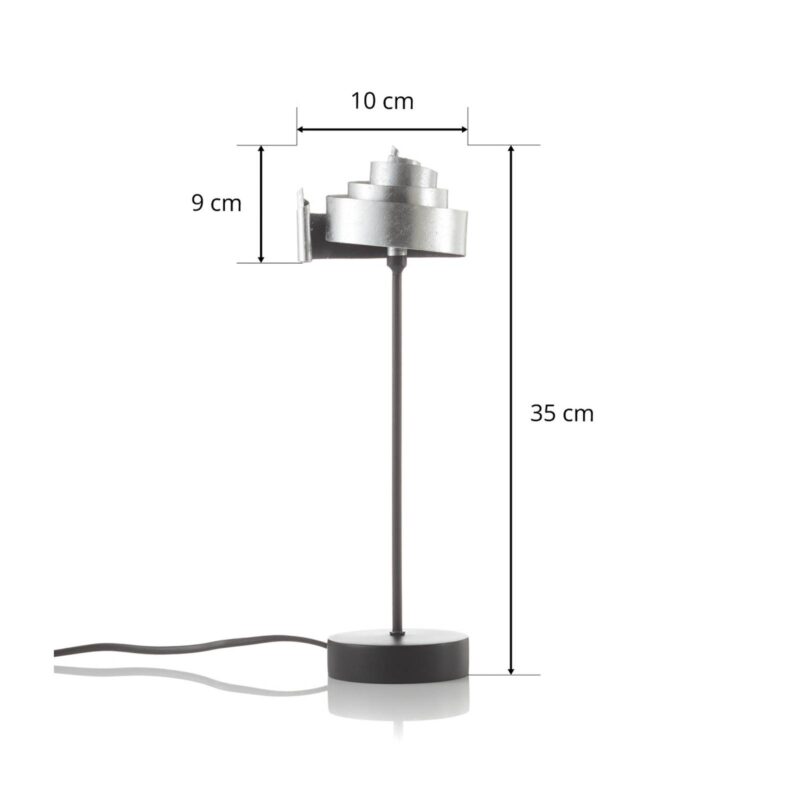Stolová lampa BANDEROLE SILVER poskytuje mimoriadne svetelné okamihy Stolová lampa BANDEROLE SILBER má efektné tienidlo na lampu zo železa striebornej farby v tvare špirály. Špirálovitá optika zaisťuje neobvyklé rozloženie svetla, ktoré vytvára efektívne akcenty. Umelecký pútač očí v každej miestnosti!