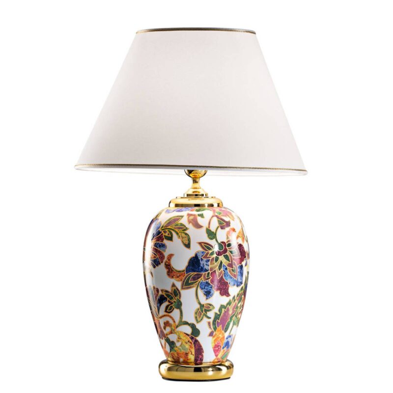 Vysoká kvalita spracovania a vzhľadu – stolová lampa Damasco Stolová lampa Damasco je skvostná a ušľachtilá a zaujme nielen svojou vysoko kvalitnou zmesou materiálov s keramickým, textilným a 24karátovým zlatom. Použitie klasického tvaru tienidla je kombinované s podstavcom, ktorý pripomína amfory, a preto ho možno perfektne integrovať do klasického prostredia. Okrem klasického vzhľadu získa Damasco svieži nádych vzoru, ktorý sa používa ručne s ozdobnými matricami a potom sa vypaľuje do vázy. Iba biely textilný tieň v tvare kužeľa je na koncoch pozlátený a zostáva pomerne jednoduchý. Dodá svietidlu pokojný vzhľad a jemne vedie svetlo zo zdroja svetla, ktorý sa má použiť, cez biele tienidlo na lampu do okolia. Stolová lampa Damasco je jedinečný a dekoratívny svetelný predmet do obývacích izieb a do hotelového prostredia.