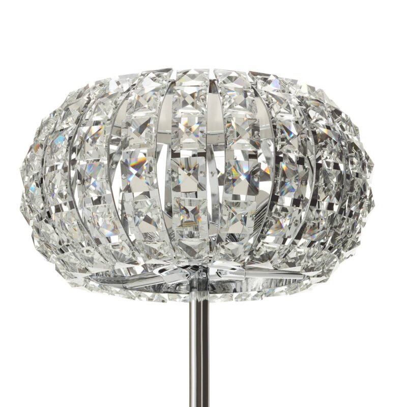Tienidlo z krištáľov: stolná lampa DIAMOND Stolná lampa DIAMOND vyžaruje v miestnosti špeciálny lesk: Jej tienidlo pozostáva z nespočetných štvorcových krištáľov, ktoré odovzdávajú svetlo žiaroviek trblietavým spôsobom.