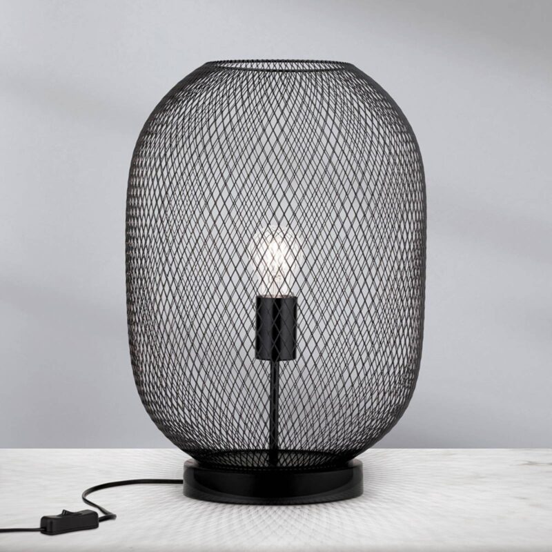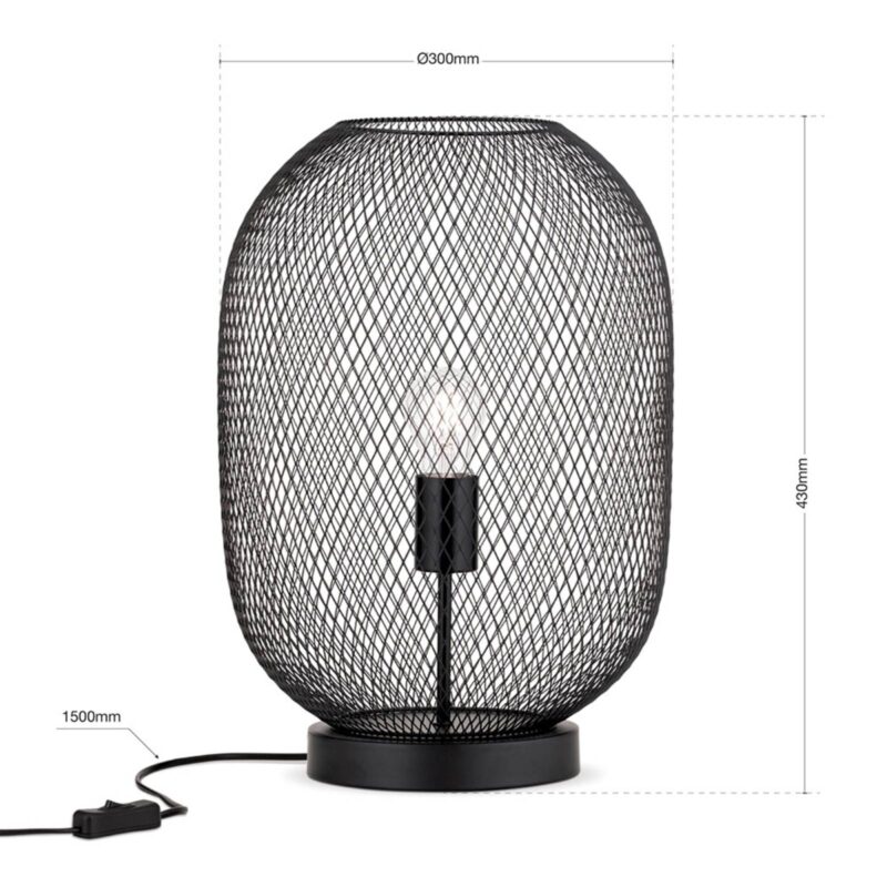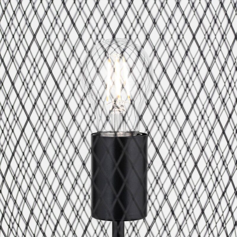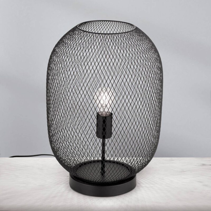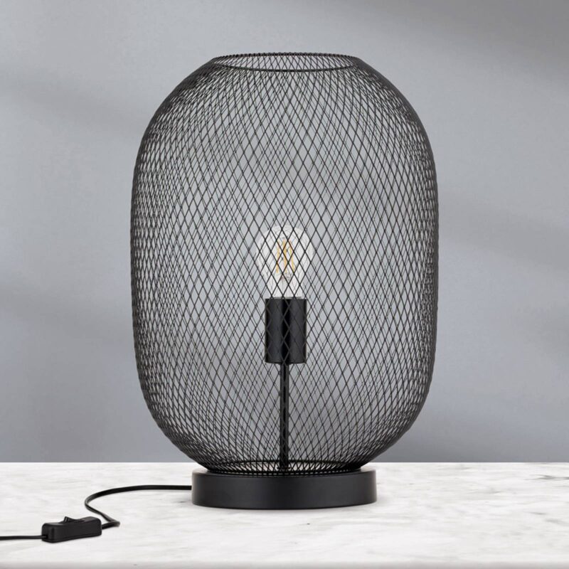Moderná stolová lampa Georgina s klietkovým tienidlom Stolová lampa Georgina poskytuje nielen veľmi atmosférické dodatočné svetlo, ale pôsobí aj ako dekoratívny prvok v miestnosti, ktorý po vypnutí vďaka jemnej kovovej sieťke vyžaruje aj zvláštny vkus. Má cibuľovitý podlhovastý tvar a vďaka matnej čiernej farbe je otvorený takmer akejkoľvek farebnej kombinácii. Vďaka rovnomernému sieťovitému krytu je zdroj svetla zreteľne viditeľný, ktorý je v strede vyvýšený a vyžaruje svoje svetlo bez toho, aby bol zakalený. Ideálne sa sem hodia moderné žiarovky LED, ktoré túto žiarovku nielenže dostanú do popredia pozornosti, ale sú atraktívne aj vďaka nízkej spotrebe energie.