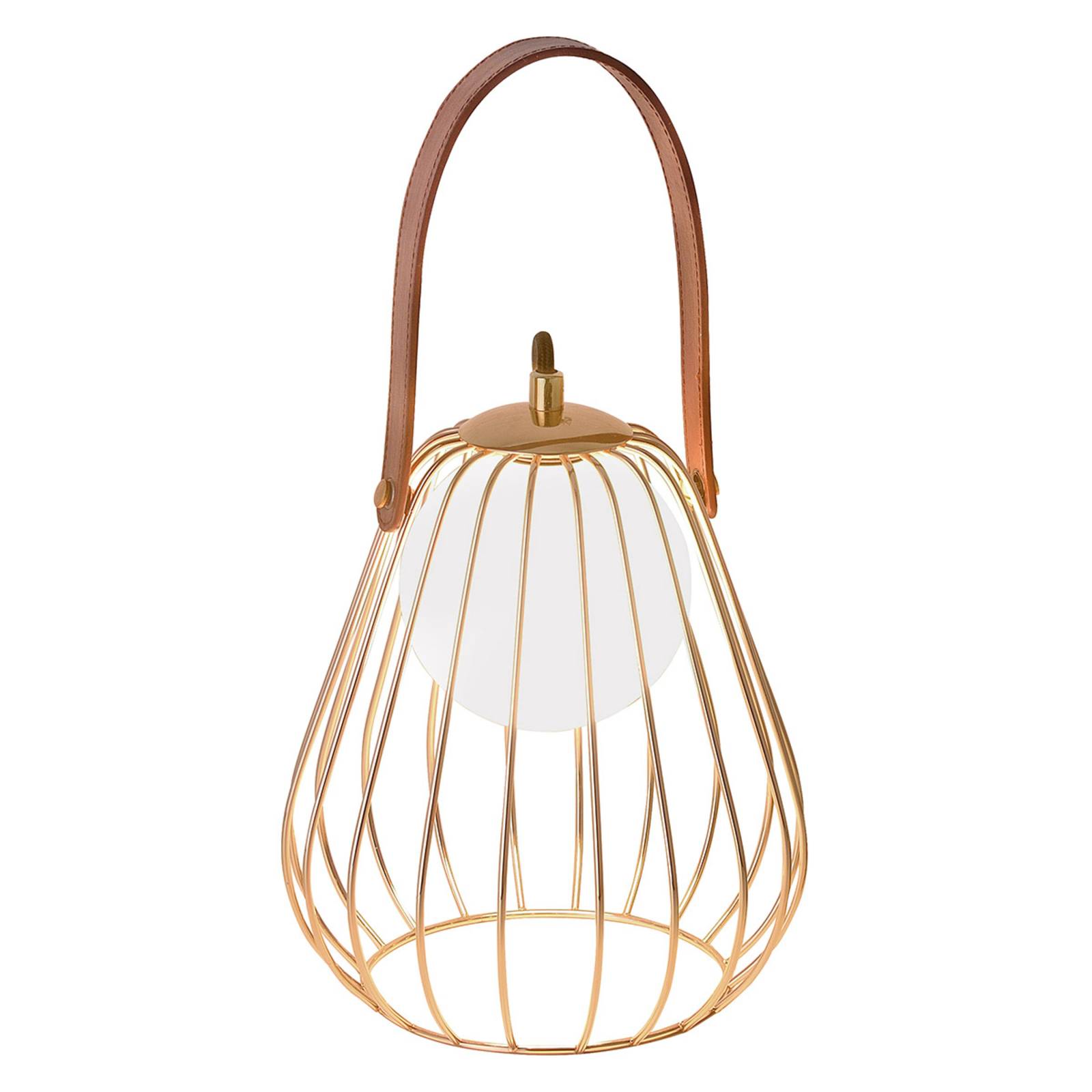 Sklenená guľa zachytená v zlatej klietke – stolná lampa Levik Stolná lampa Levik sa prezentuje veľmi dekoratívnym a moderným dizajnom, ktorý upúta pozornosť najmä otvorene navrhnutým tienidlom v klietke s lesklou zlatou povrchovou úpravou. Pod ním sa nachádza matná biela sklenená guľa, do ktorej možno vložiť zodpovedajúcu žiarovku G9. Vďaka matnému sklu sa svetlo vyžaruje do miestnosti veľmi jemne a s nízkym oslnením a umožňuje skvelé hry svetla s tieňom cez vzpery klietky. Kožený remienok je pripevnený k hornej časti tienidla klietky ako rukoväť na prenášanie a umožňuje premiestňovanie lampy. K prívodnému káblu je pripojený vypínač na zapnutie a vypnutie lampy. Stolová lampa Levik upúta pozornosť na každej komode alebo na nočnom stolíku a dá sa výborne kombinovať s ostatnými lampami z tejto série. Prostredníctvom príslušenstva je k dispozícii zodpovedajúca žiarovka.